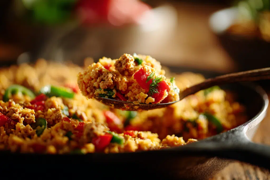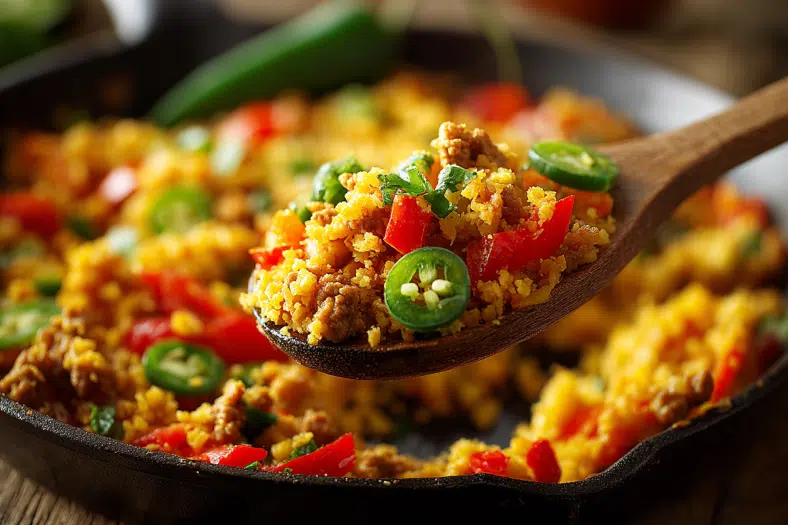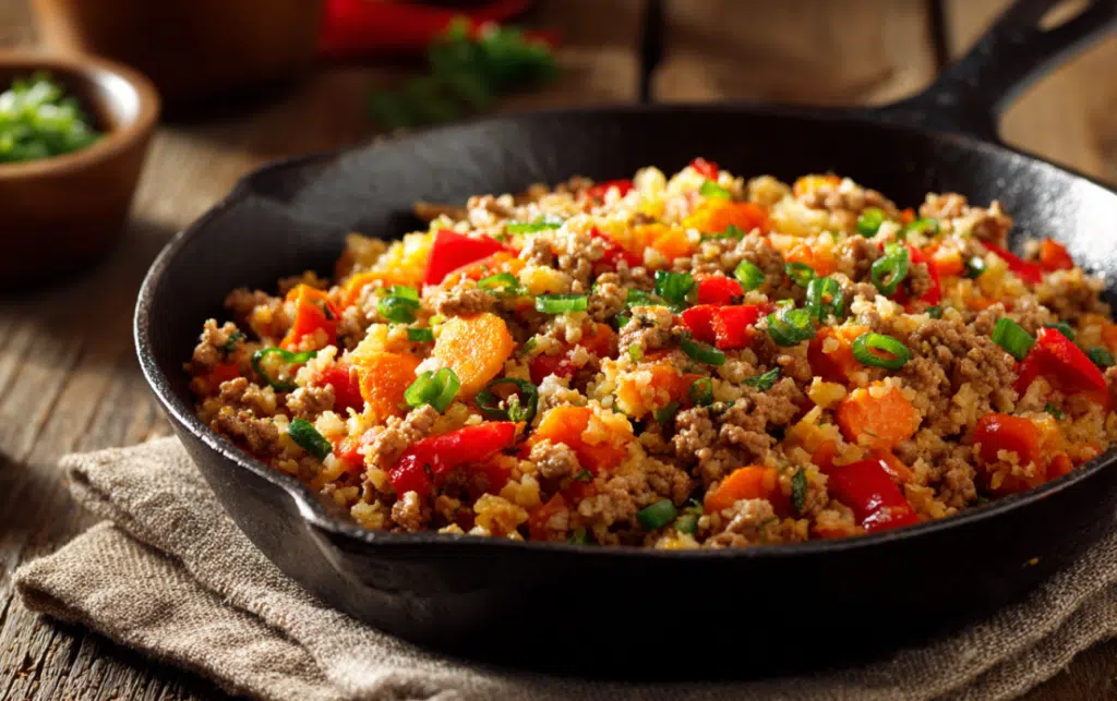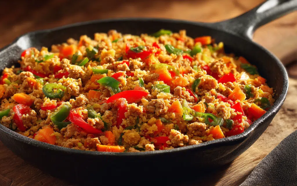 A quick, fiery, and healthy skillet dish made with ground turkey, cauliflower rice, and bold spices. Ready in just 20 minutes, this one-pan recipe is low-carb, gluten-free, and perfect for weeknight dinners.