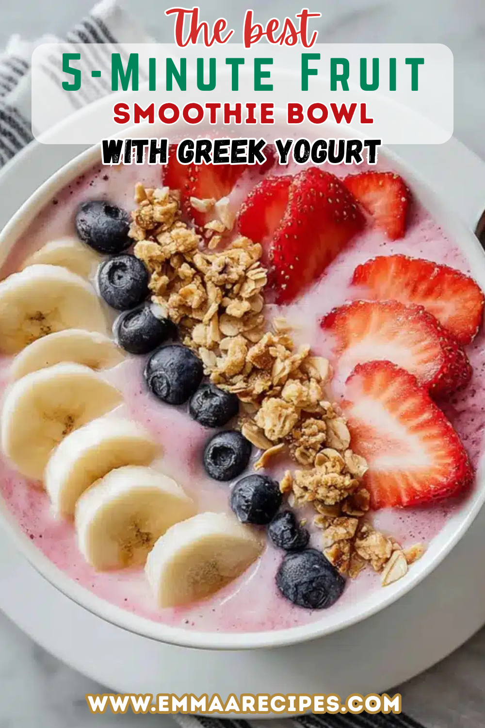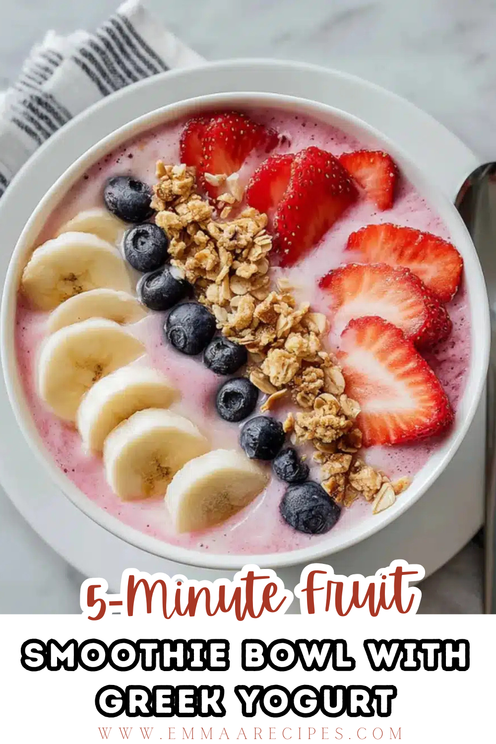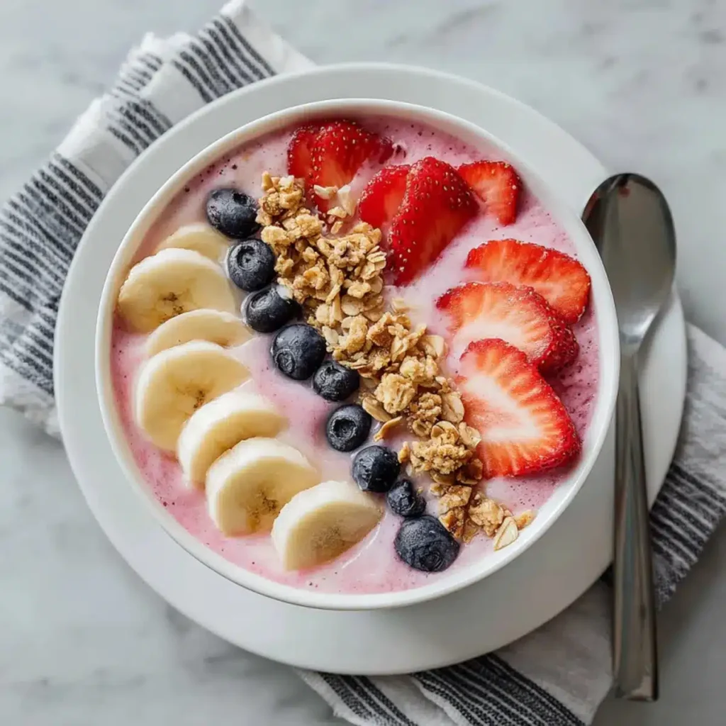 This 5-minute fruit smoothie bowl with Greek yogurt isn't just a meal it's a moment. A cool, creamy escape from the rush of the day. Whether you pile it high with toppings or keep it simple, it's an invitation to slow down and savor.
