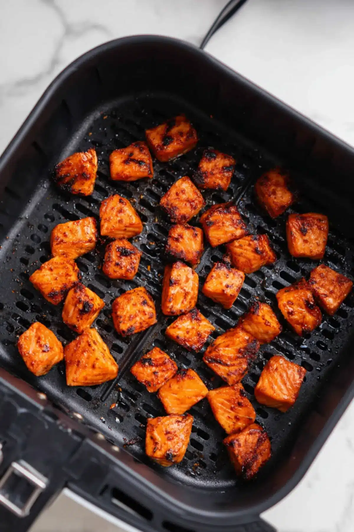 6. Arrange salmon bites in a single layer in the air fryer basket