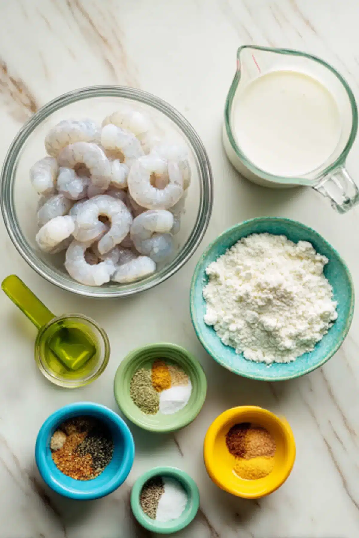In a bowl, whisk buttermilk with salt, pepper, onion powder, and garlic powder. Add the shrimp and stir to coat. Let them marinate while you heat the oil.