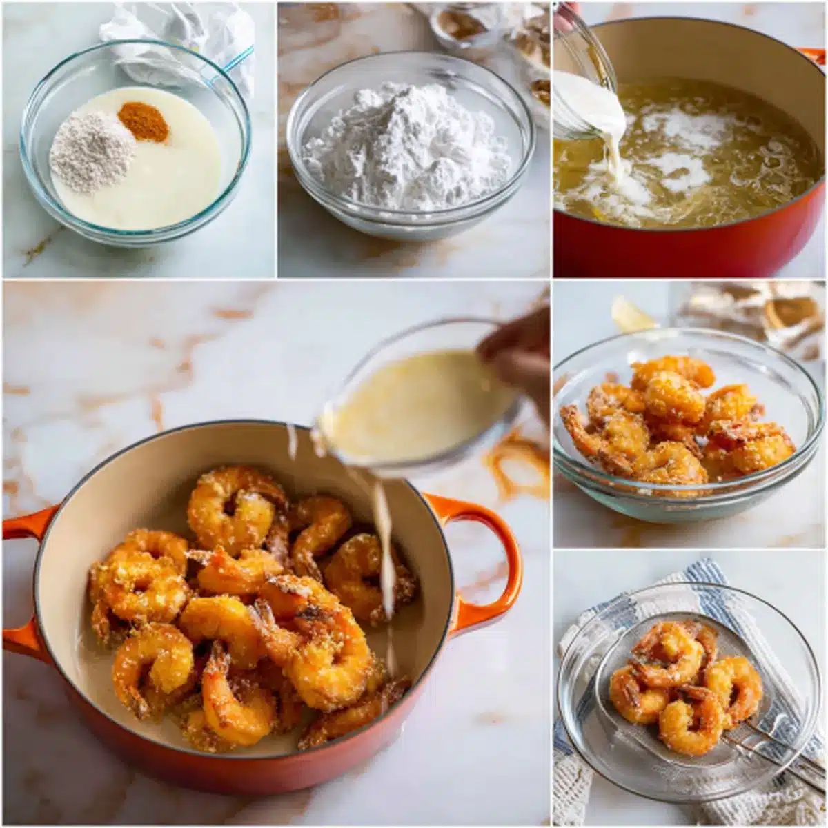 Heat 1 ยฝ inches of oil in a pot or Dutch oven to 375หšF. Fry shrimp in batches (2.5 to 3 minutes each), turning if needed, until golden and crispy. Rest on a paper towel-lined plate.