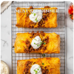 The exterior is golden, crispy, and flaky, while the inside is rich and savory. The seasoned beef is hearty and aromatic, the refried beans add creamy depth, and the cheddar melts into silky strands that stretch with every bite.