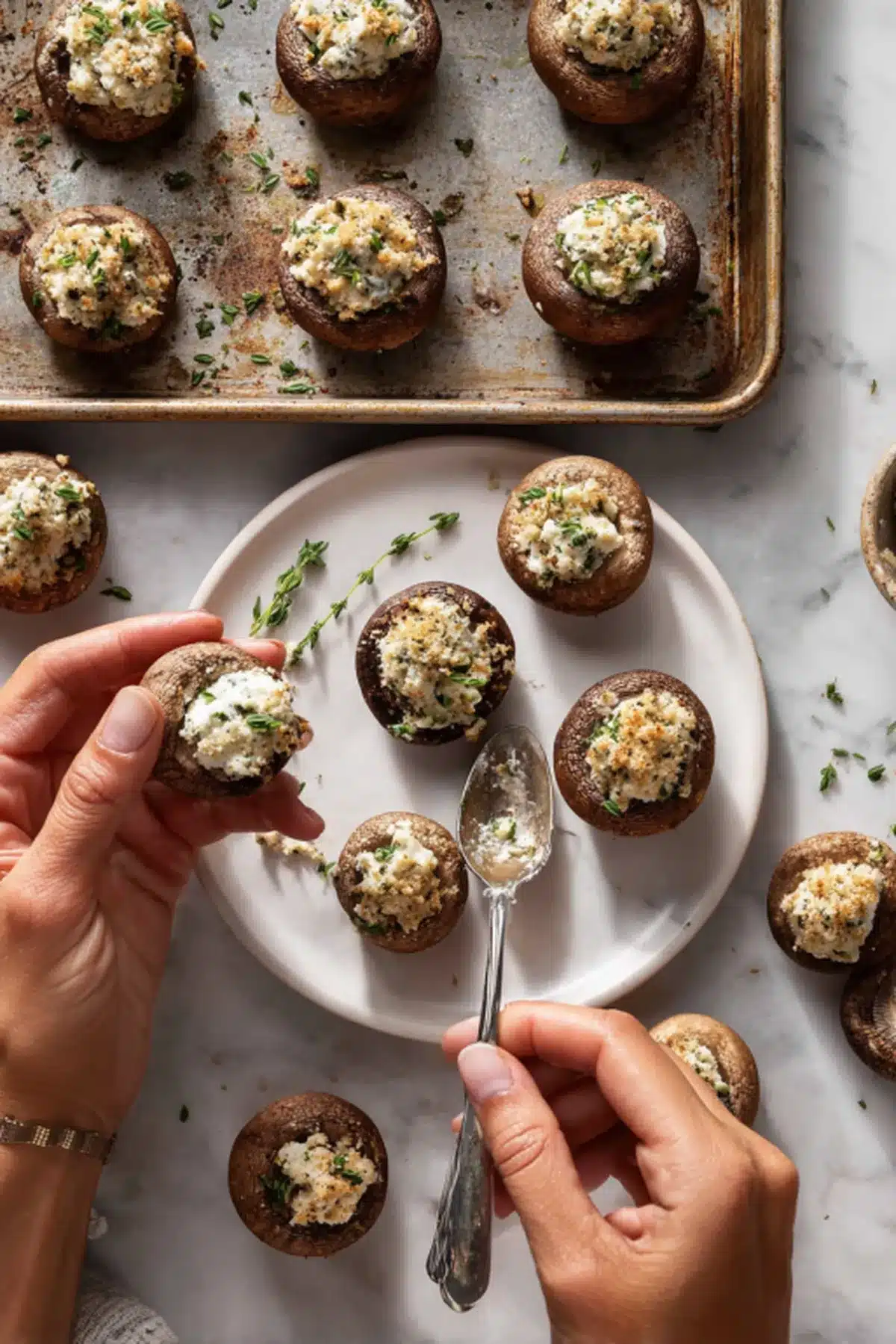 These stuffed mushrooms deliver everything I love about cozy, savory bites warm, creamy filling nestled in little mushroom cups. The focus keyword stuffed mushrooms fits right in, because that's exactly what they are and what makes this recipe special. Imagine mushroom caps sunk with tender stems sautรฉed in butter and garlic, then swirled into a smooth cream cheeseโandโParmesan filling, topped with fresh parsley and thyme, baked until golden and irresistible. I remember serving them at a summer patio gathering and the platter returned empty before the next story was told. Don't worry if your caps look rustic that's half the charm.