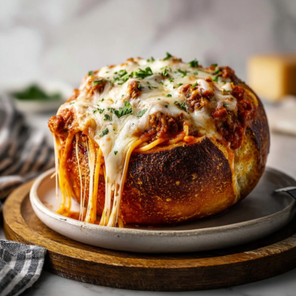 Bread Bowl Spaghetti brings comfort and fun together in one irresistible dish. Crispy garlic butter bread, saucy pasta, and melted cheese create a meal that feels indulgent yet simple to prepare. Once you try it, it may just become your new favorite way to serve spaghetti.