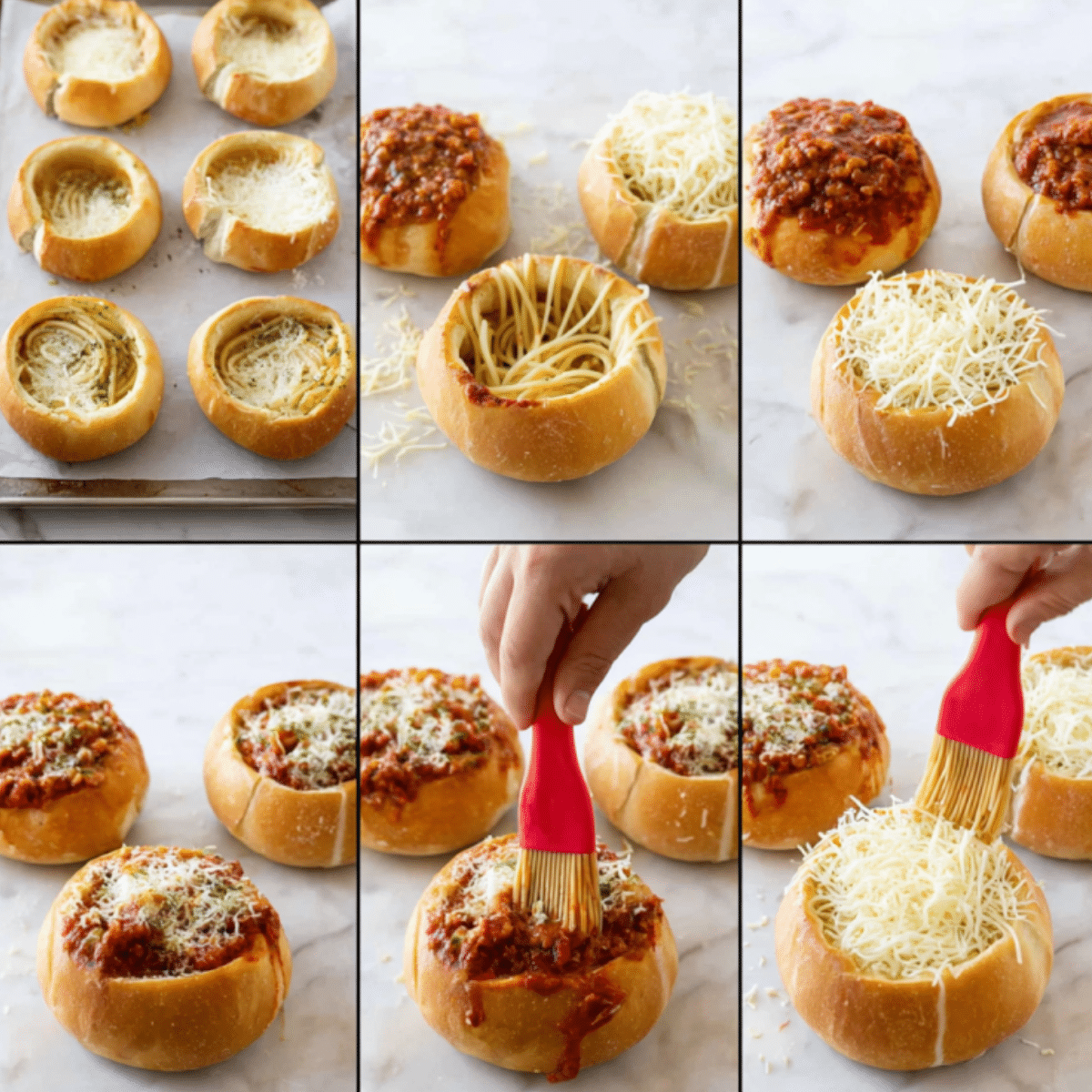 Bread Bowl Spaghetti is the kind of comfort food that makes everyone gather closer to the table. Crispy, golden rolls brushed with garlic butter and filled with saucy spaghetti and melted mozzarella it's hearty, cheesy, and impossible to resist. This dish turns a simple pasta night into something playful and memorable.