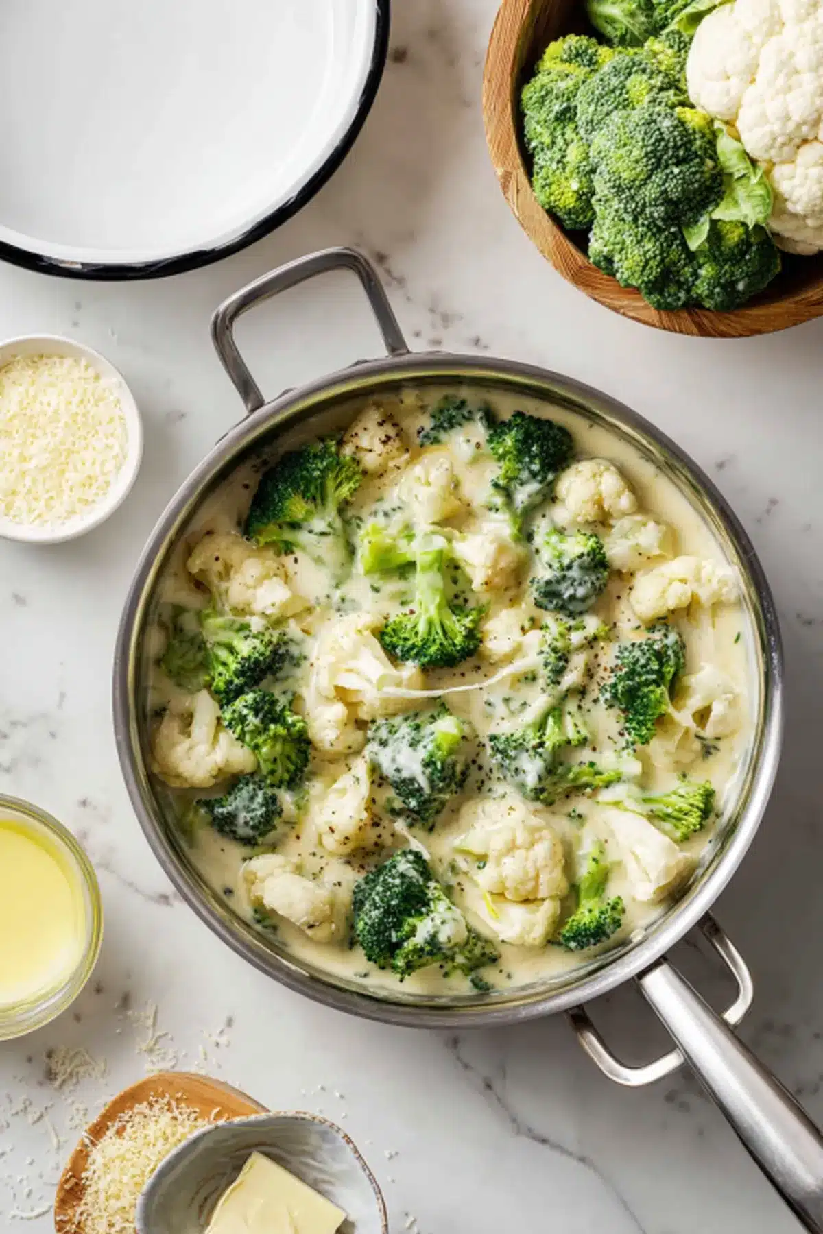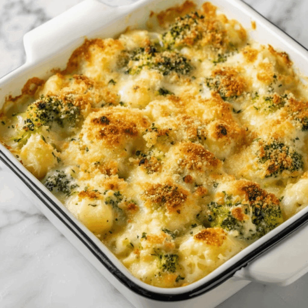 A creamy, cheesy vegetable au gratin with broccoli and cauliflower florets baked to golden perfection. Cozy, indulgent, and weeknight-friendly.