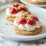 Cherry Cheesecake Cookies take the nostalgic flavors of a New York-style cheesecake and wrap them into a soft, buttery graham cookie topped with tangy cream cheese frosting and ruby-red cherries. These cookies are a crowd favorite easy to make and even easier to love.