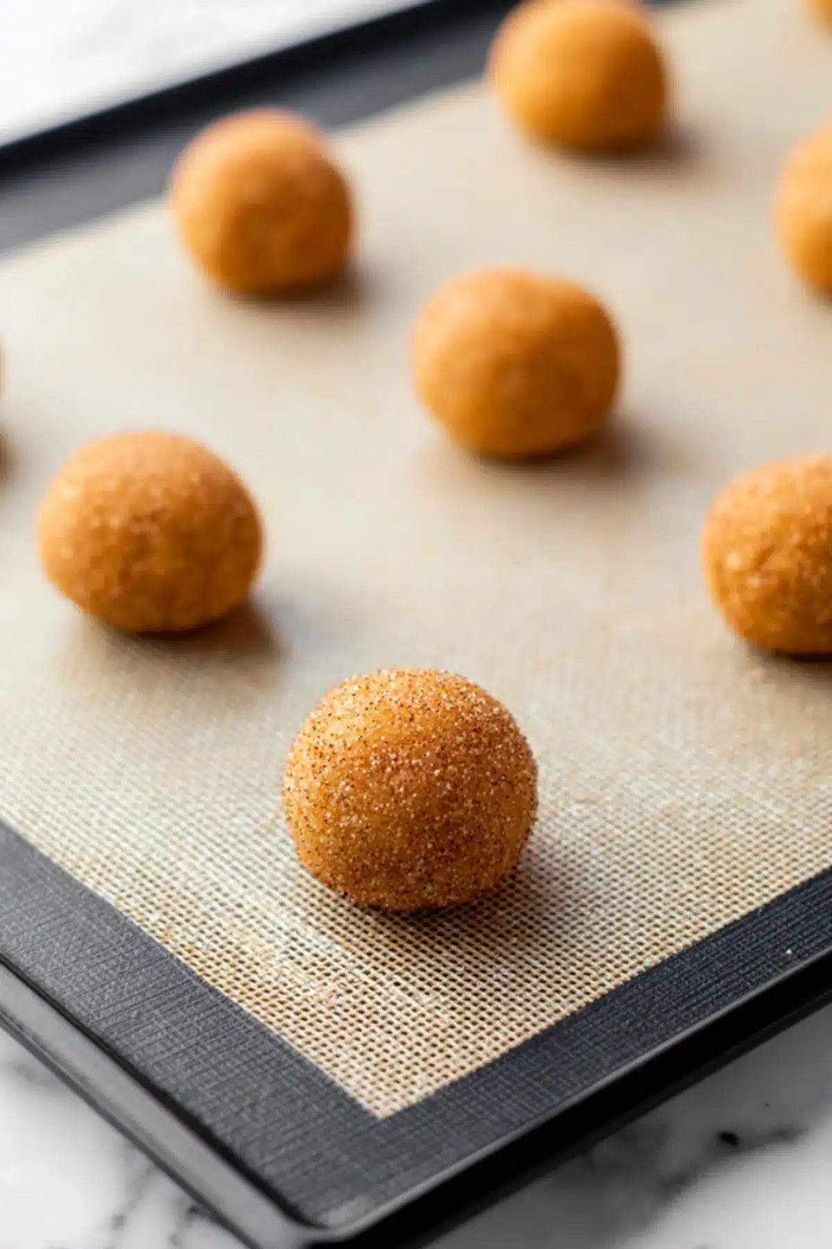 Imagine a warm cookie where the edge has a gentle crisp crackle thanks to the cinnamonโ€‘sugar coating, then your teeth sink through to a soft, chewy center that holds together beautifully not dry, not cakey, but rich and supple. The subtle tang of the cream of tartar gives depth, balancing the sweet sugar and warm cinnamon. The butter and sugar creamed together create a light texture, yet the result remains satisfying and rich.