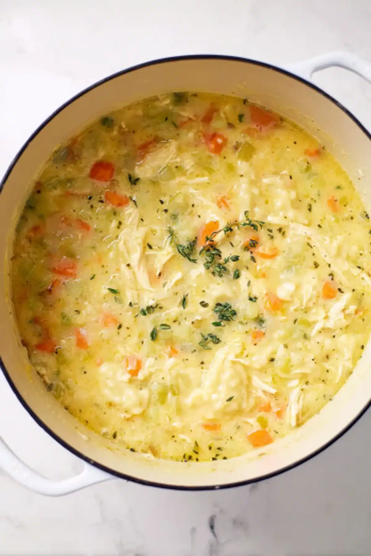 - If using raw chicken, add extra cup of broth, simmer 20 minutes until cooked, shred, and return to pot.