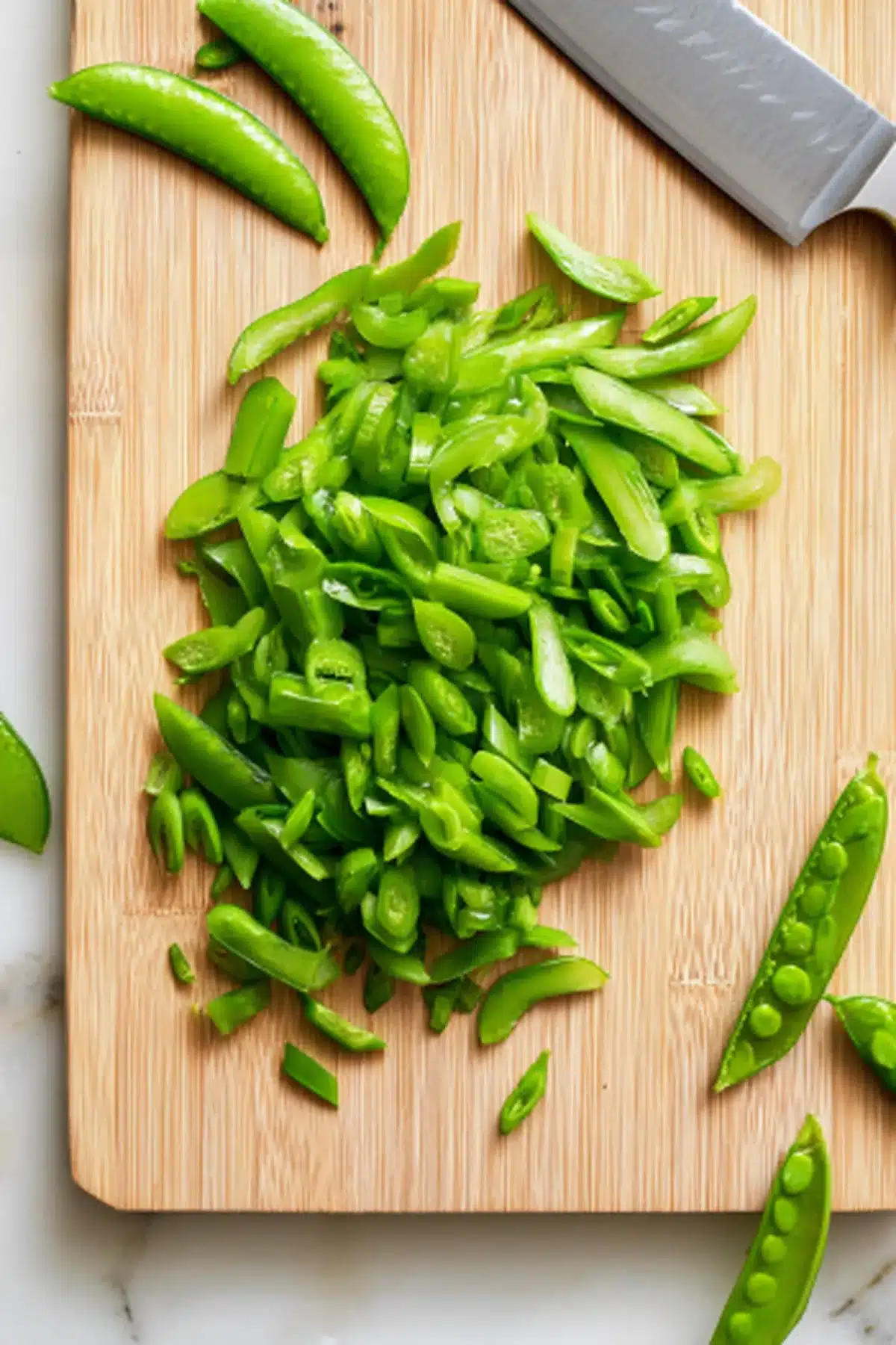 • 1 package snap peas (about 6.5 oz / 180 g), thinly sliced on a bias