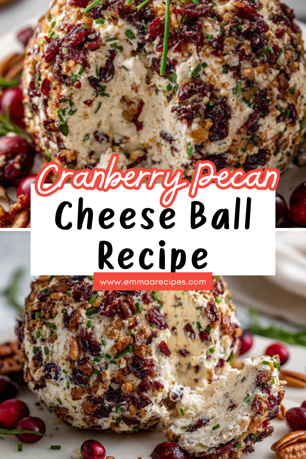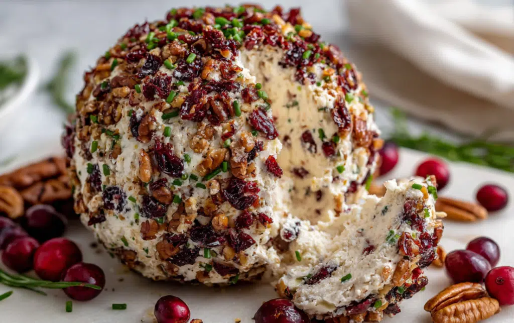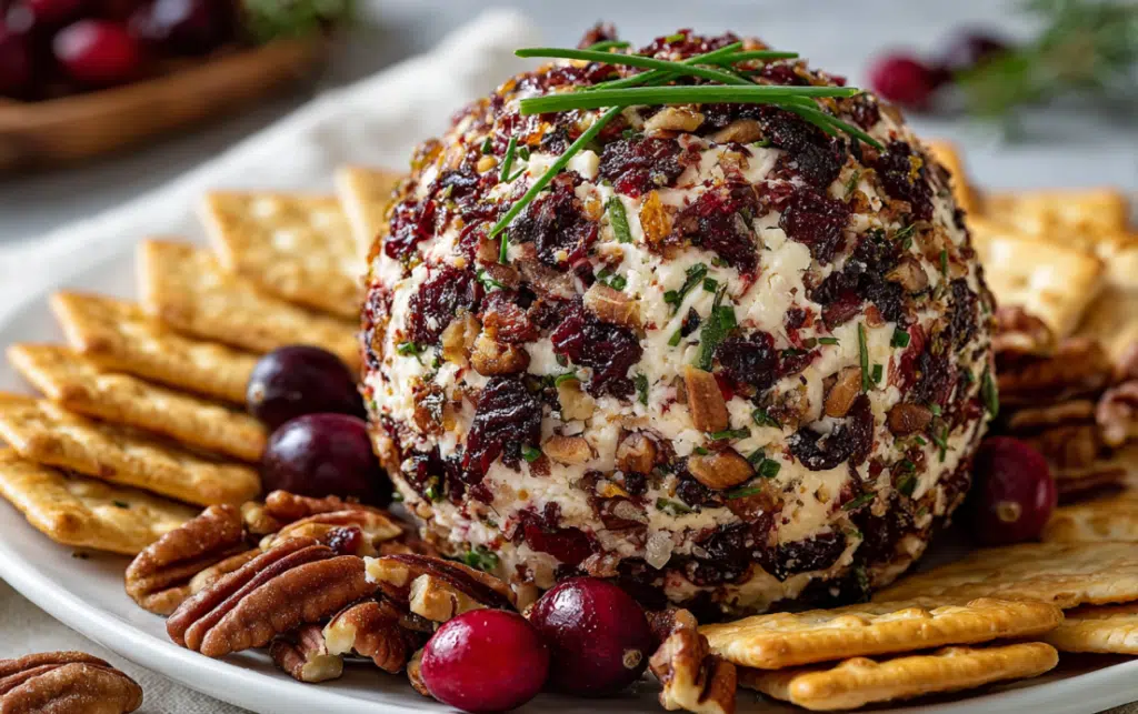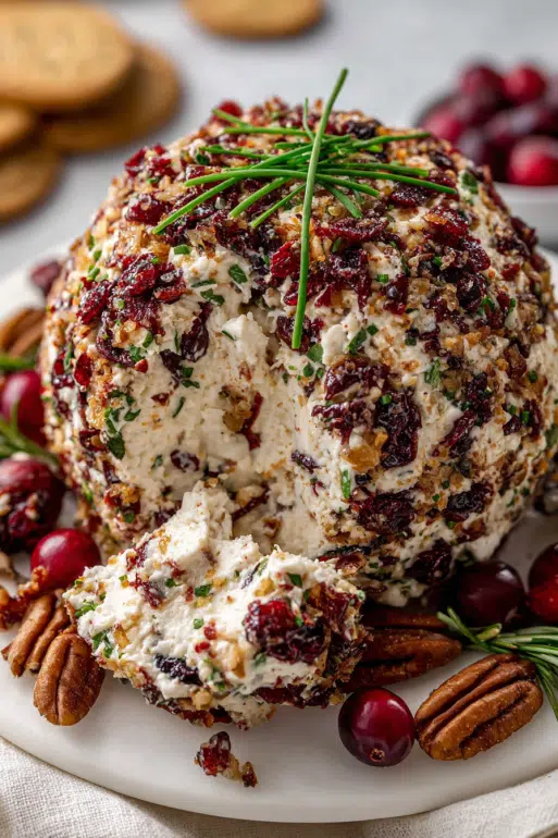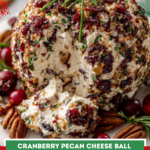 A festive and creamy Cranberry Pecan Cheese Ball made with tangy white cheddar, sweet cranberries, and crunchy pecans-perfect for holiday gatherings or easy entertaining.