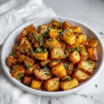 Wash, dry thoroughly, and dice into even ½-inch cubes for consistent crisping.