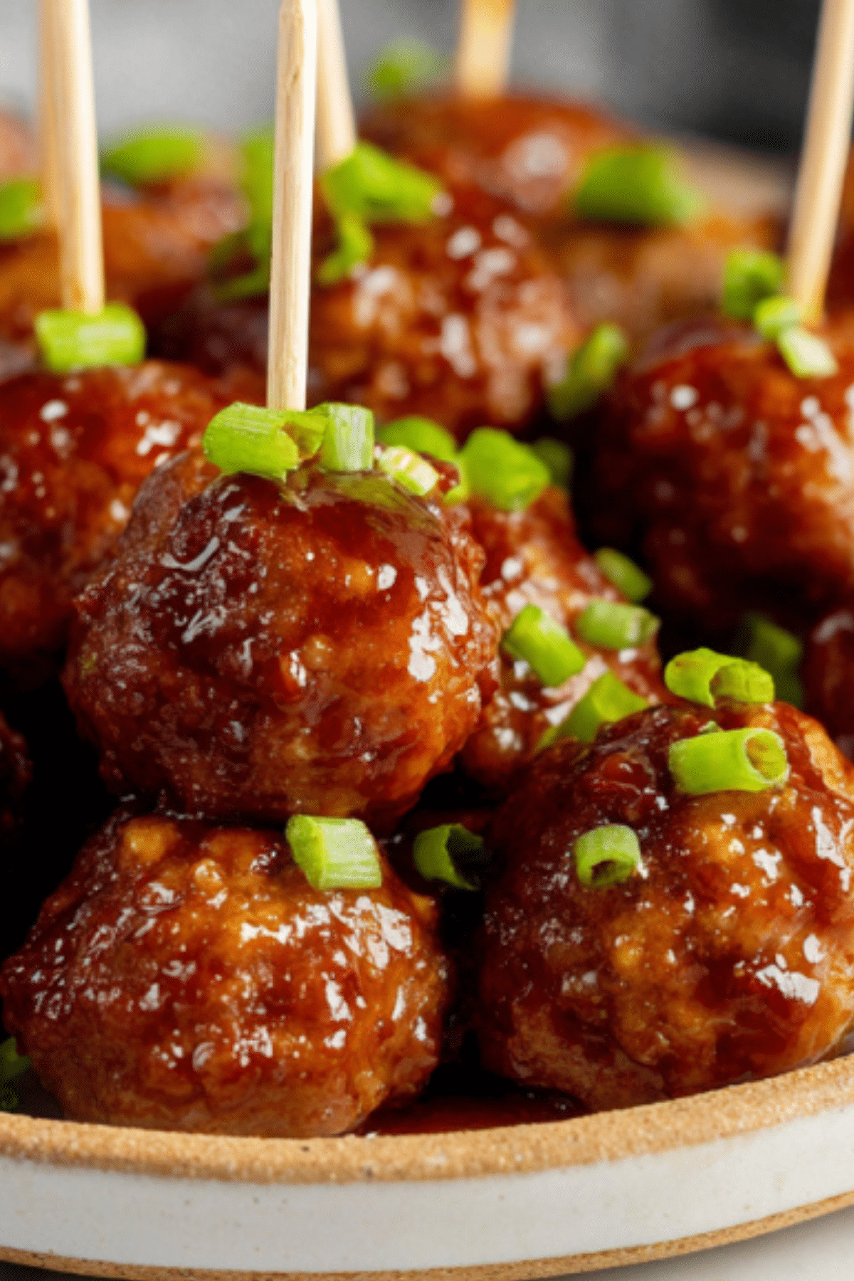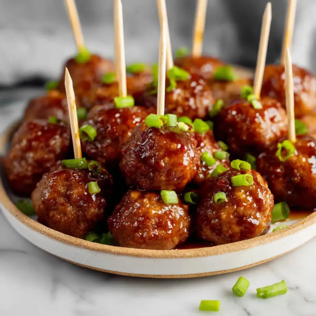 • The body of the dish: tender meatballs bathed in a glossy, syrupy sauce.