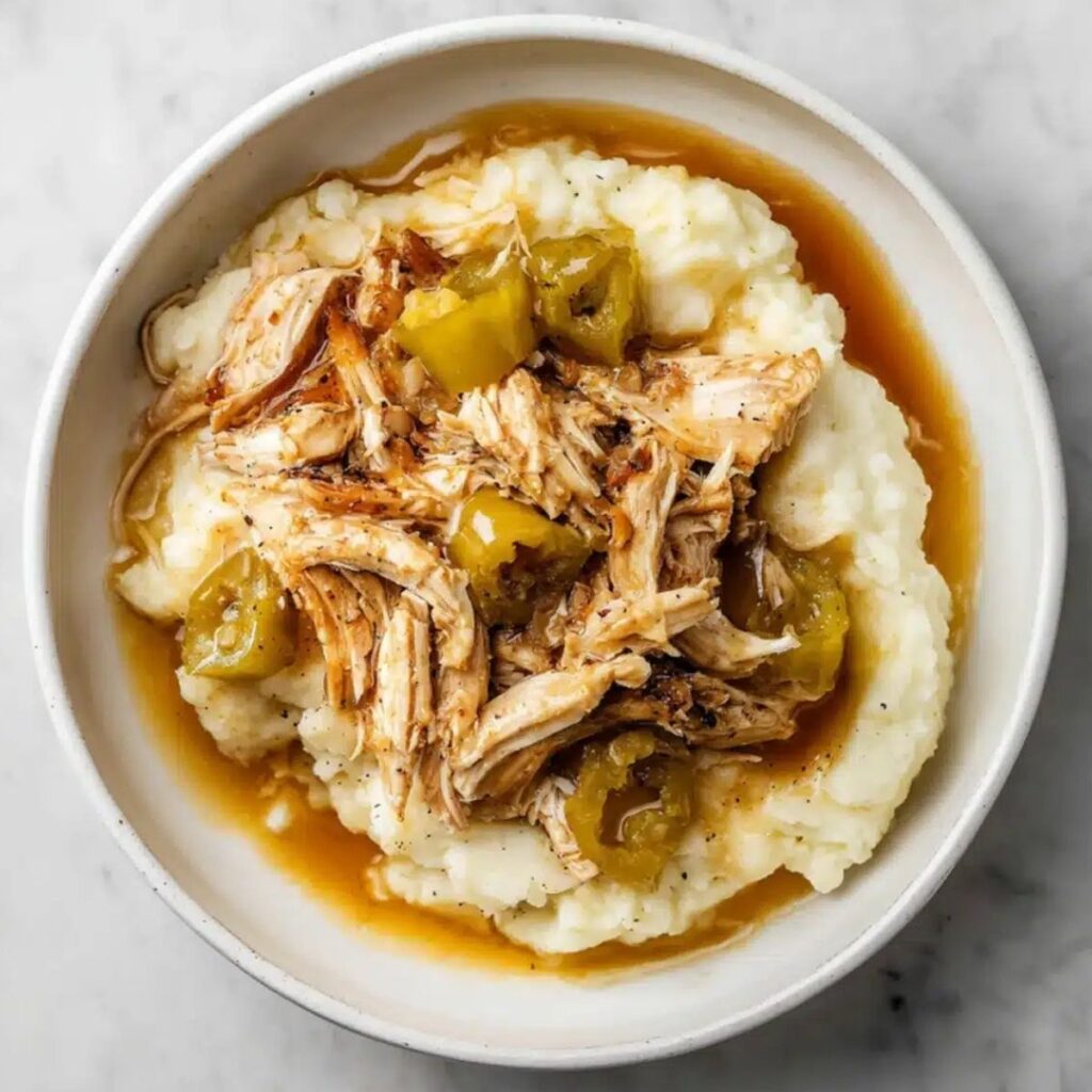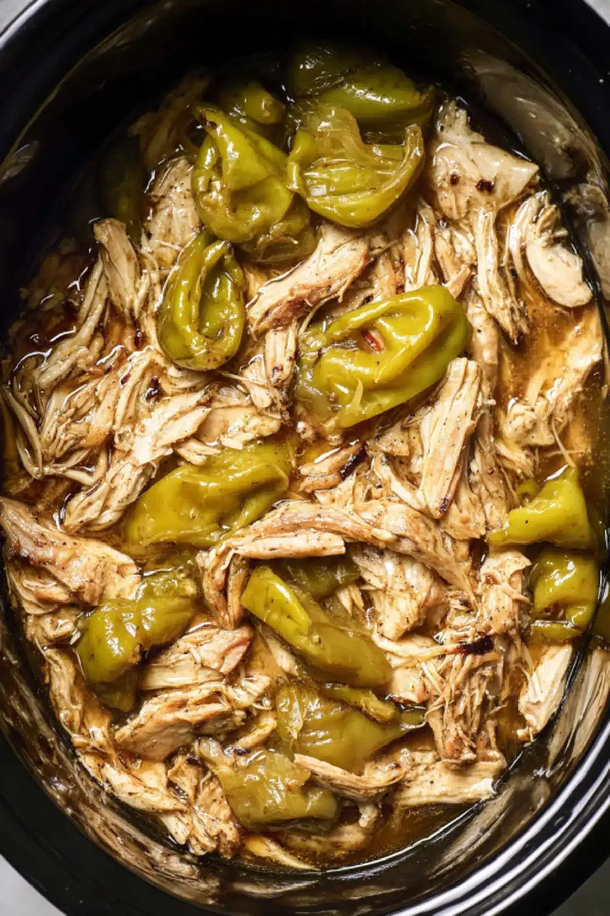 A cozy, low-effort dinner with tender shredded chicken, pepperoncini, and a buttery ranch-infused sauce that practically cooks itself.