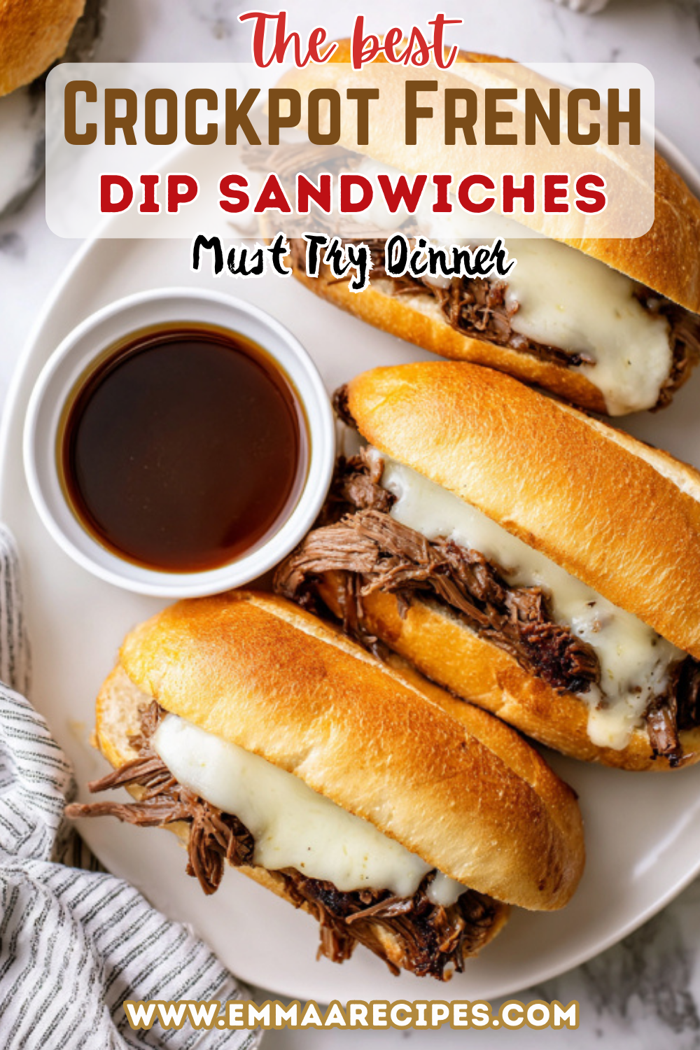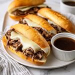 Tender, slow-cooked beef chuck roast shredded and piled onto crusty hoagie rolls, topped with melted provolone and served with rich, savory au jus for dipping. These Crockpot French Dip Sandwiches are effortless comfort food at its best.