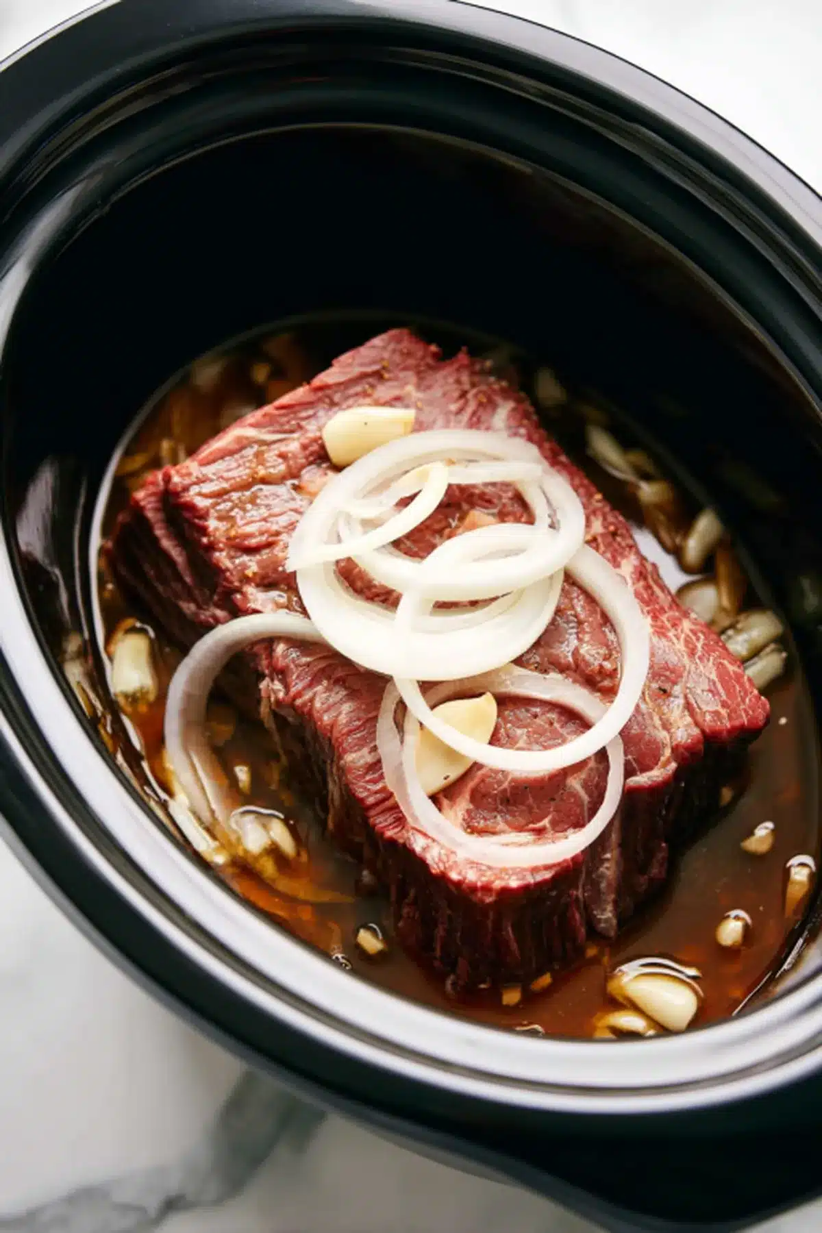 - Add sliced onions or bell peppers to the Crockpot for extra depth.