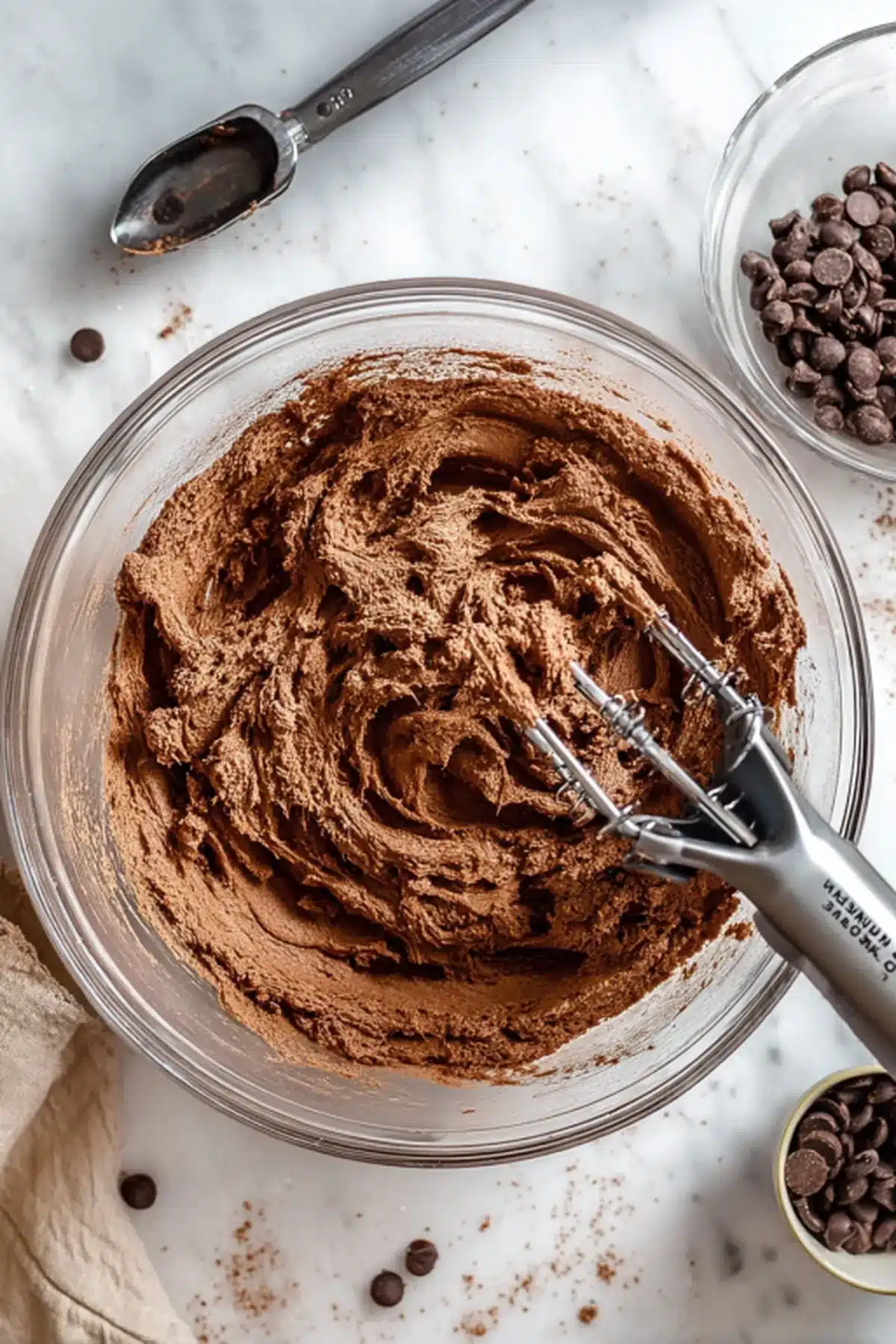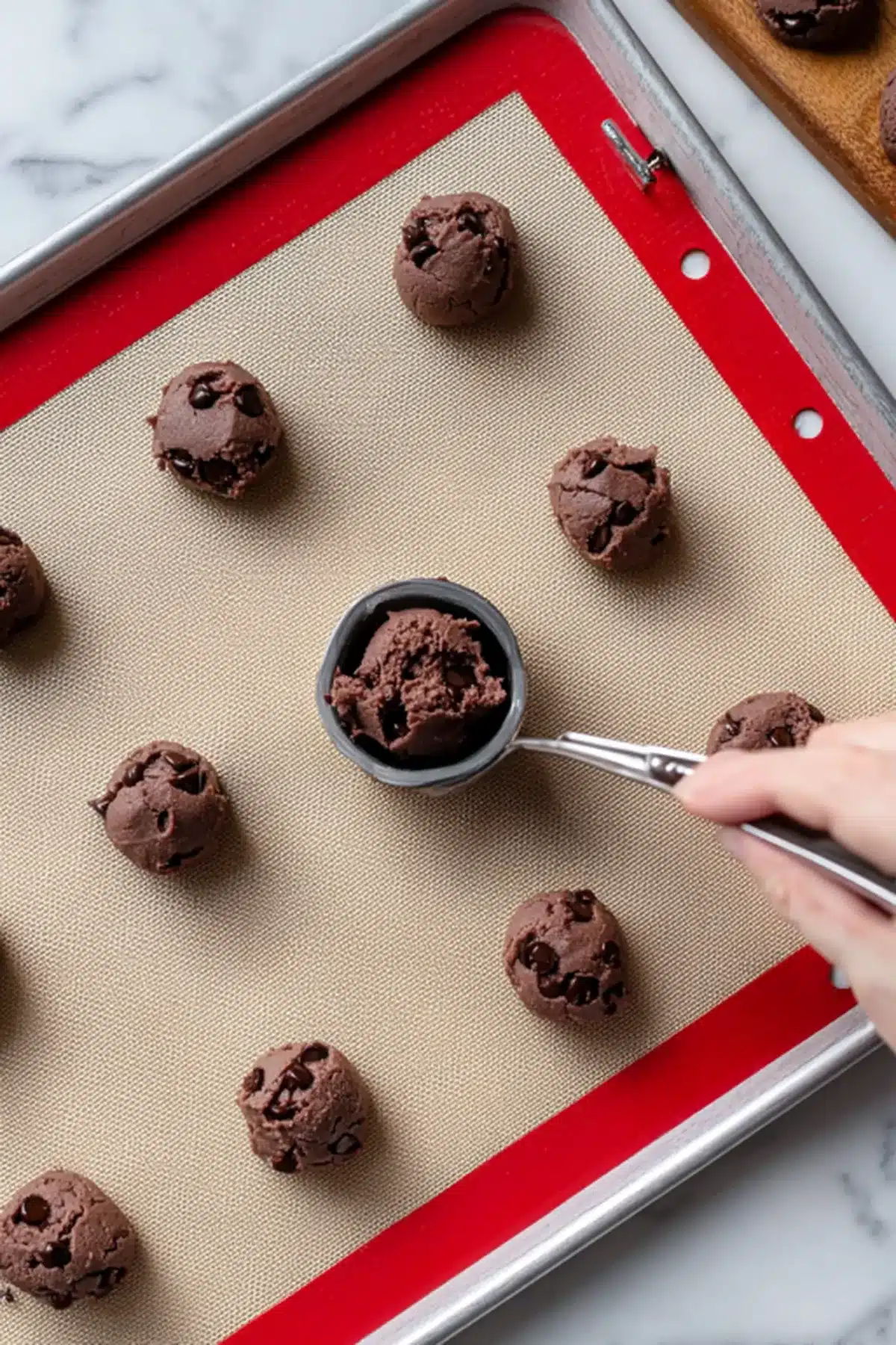 Use a spatula to gently fold the chocolate chips into the dough. - Scoop the dough