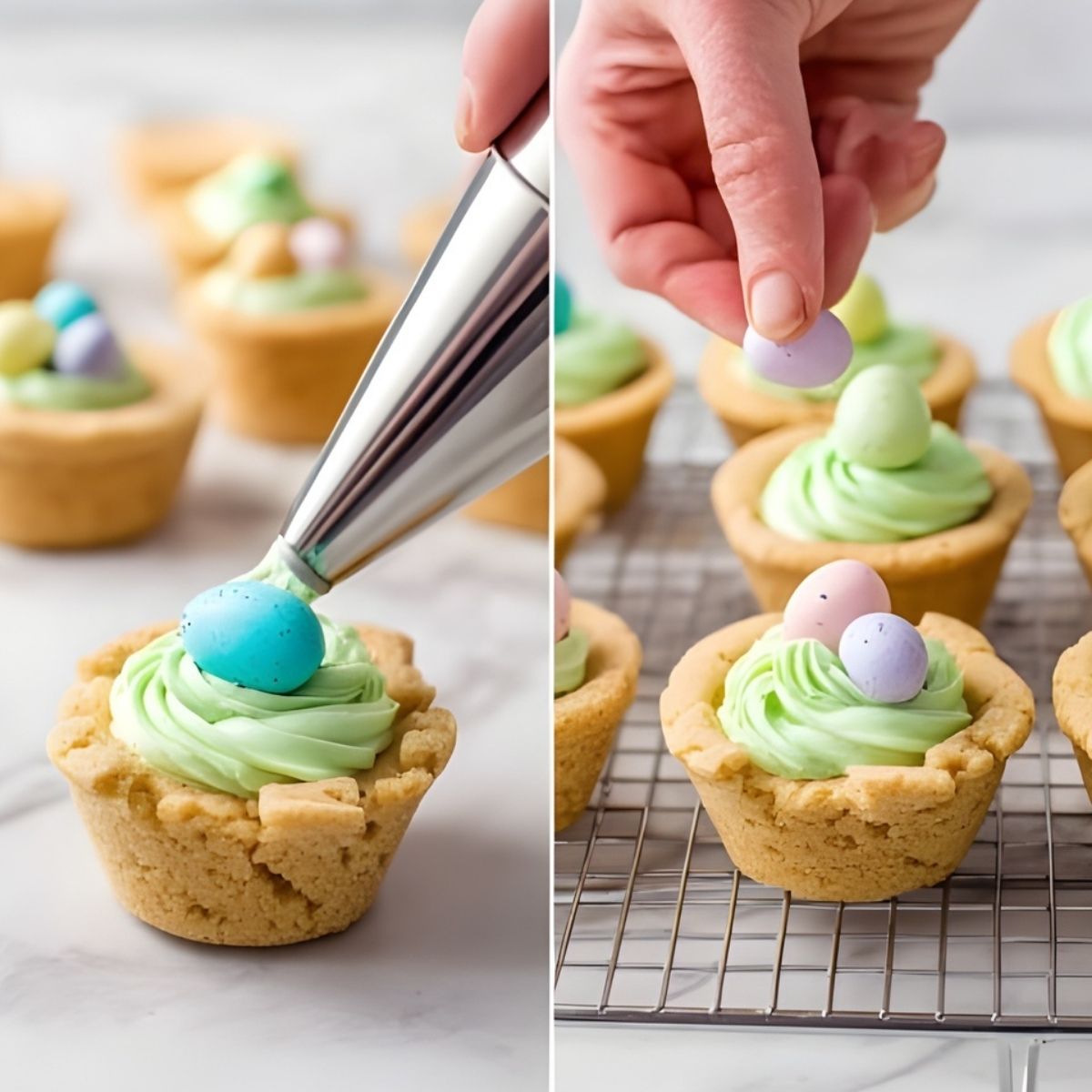 I love how these cookie cups bring together simple ingredients and a touch of creativity. As the cookies bake, your kitchen fills with the warm aroma of vanilla and buttery sugar cookies. Then comes the fun part: piping swirls of frosting and topping each cup with bright pastel eggs. It's the kind of dessert that turns baking into a celebration.