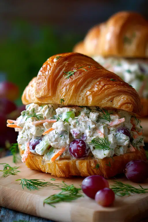 Think creamy meets crunchy shredded chicken folded into a smooth dressing, crisp celery and carrots for snap, and sweet grapes that give every forkful a burst of juice. The dill and Dijon tie it all together with an herby tang.
