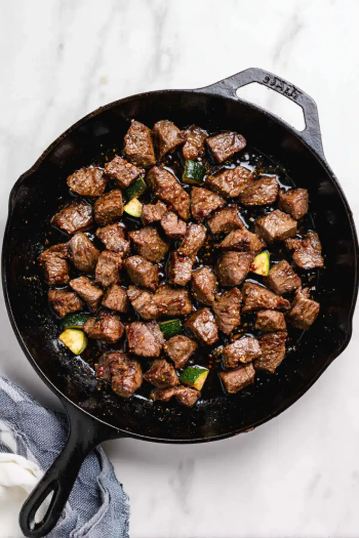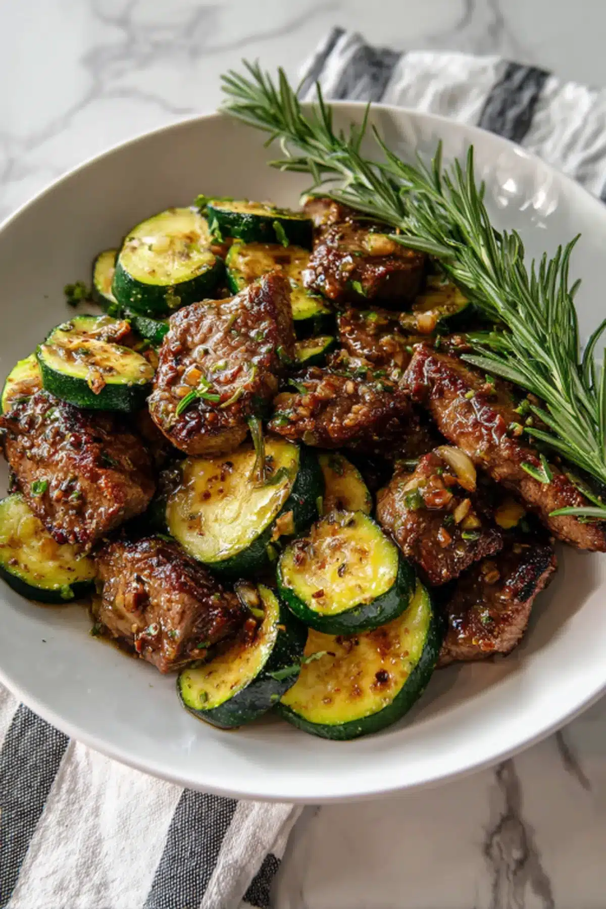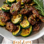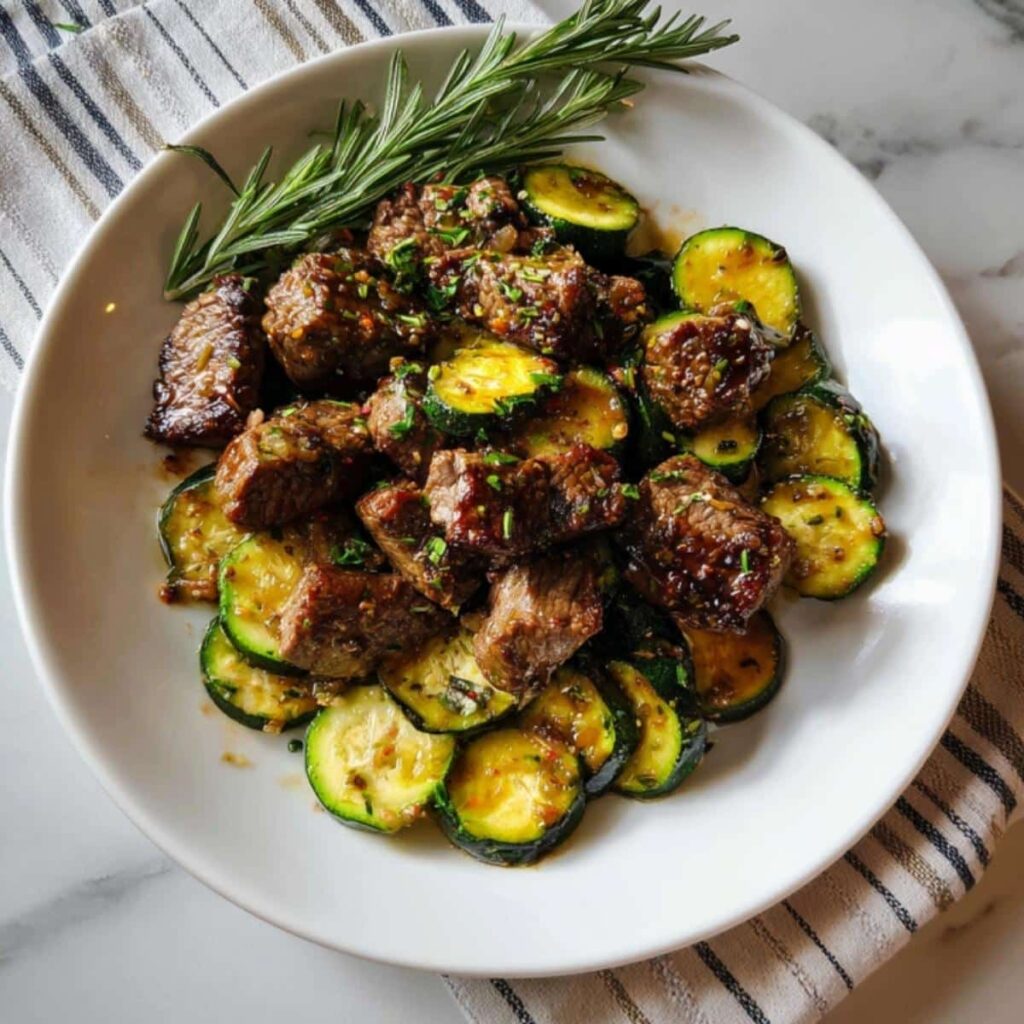 Imagine this: juicy steak bites with crisp edges, coated in silky garlic butter. The zucchini adds a fresh, slightly sweet contrast with a tender-crisp bite. Every forkful delivers richness balanced by freshness.