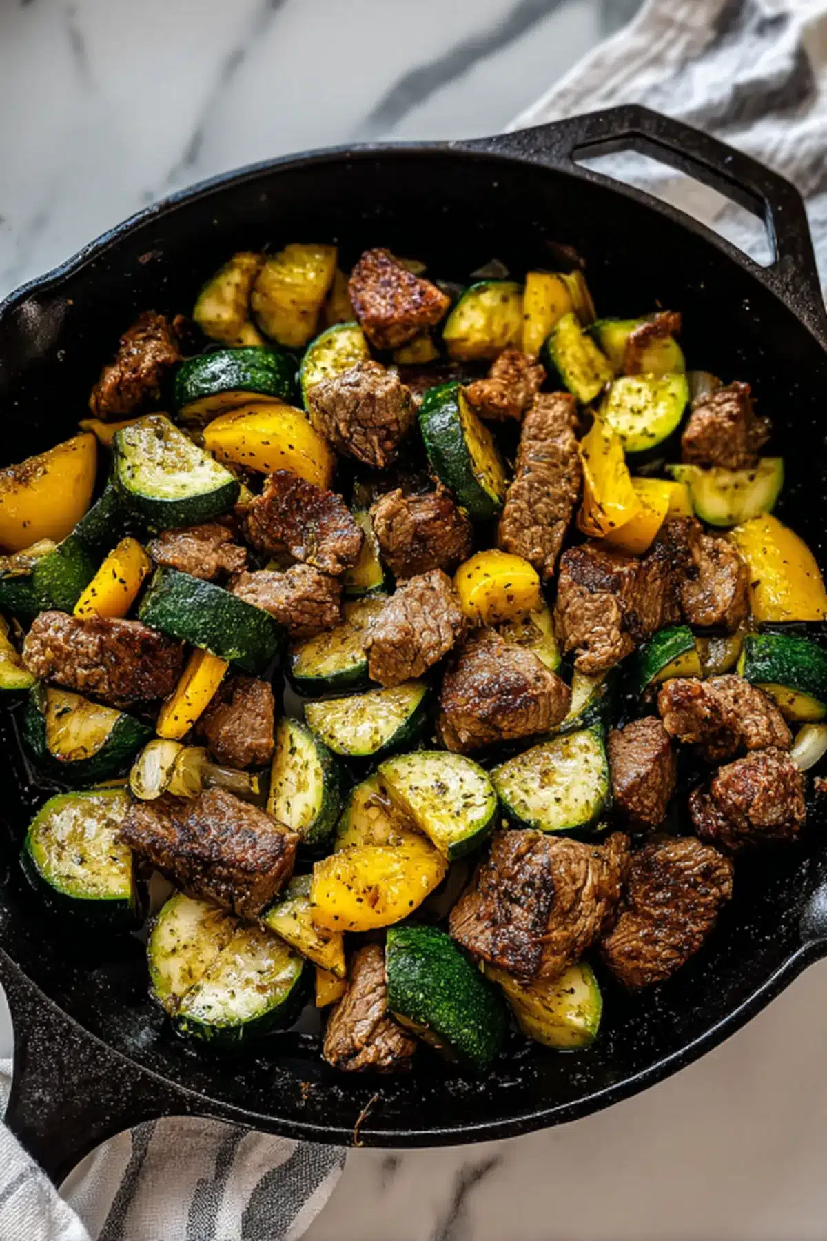 Store leftovers in an airtight container in the refrigerator for up to 3 days. Reheat gently in a skillet with a small pat of butter. Avoid overcooking to keep the steak tender. Not recommended for freezing as zucchini may become too soft.