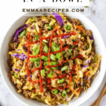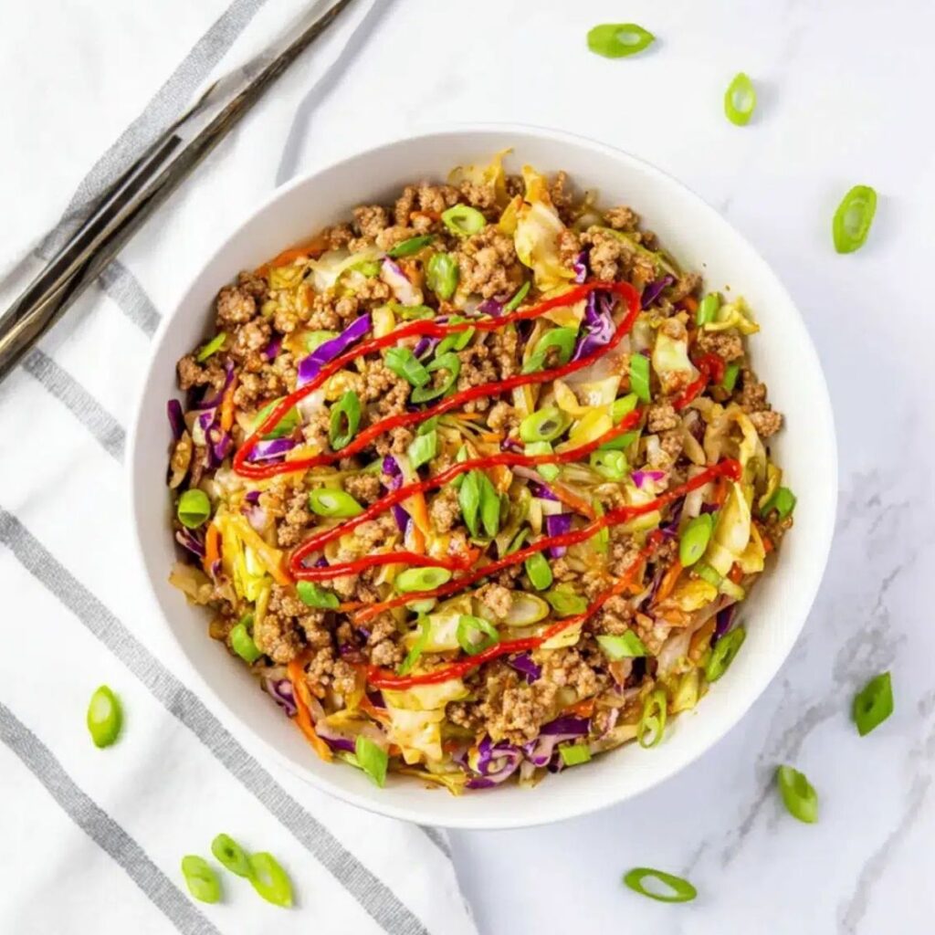 Egg Roll in a Bowl is a savory, satisfying one-pan dinner packed with classic takeout flavors tender ground pork, crisp cabbage, garlic, ginger, and sesame all without the deep-fried wrapper.