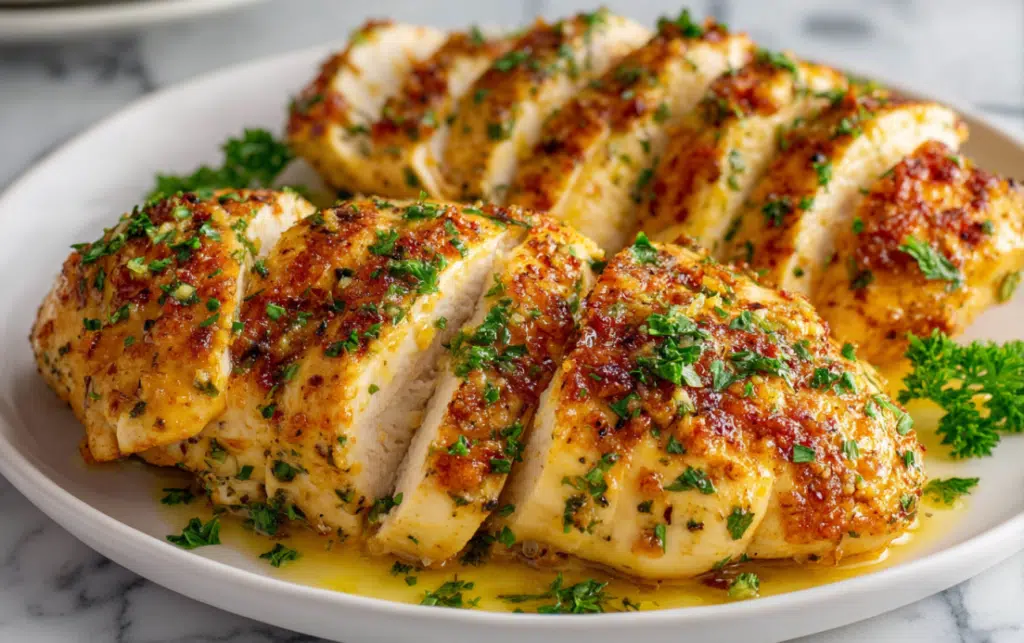 Juicy, golden-baked chicken breasts smothered in a rich garlic butter sauce simple, flavorful, and ready in under 30 minutes.