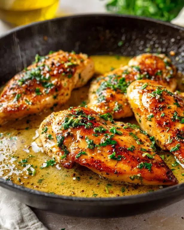 - Baste and serve: Spoon the pan sauce over the chicken before serving. Garnish with more parsley if desired.