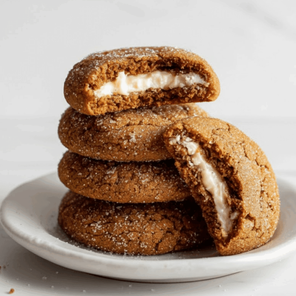 These Gingerbread Cheesecake Cookies are a cozy, spiced holiday dream soft gingerbread wrapped around tangy cheesecake centers, all rolled in crackly spiced sugar.