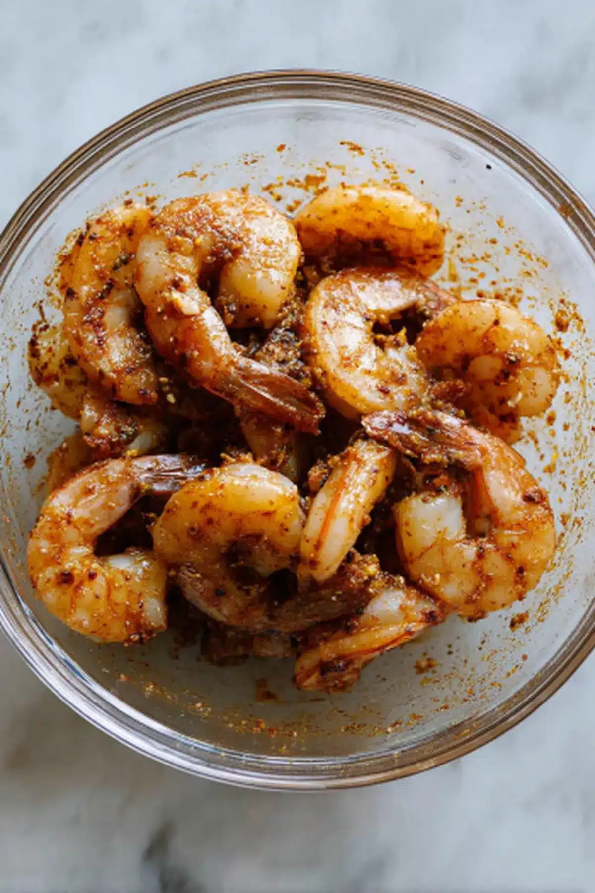 - Place peeled, deveined shrimp in a wide, shallow bowl.