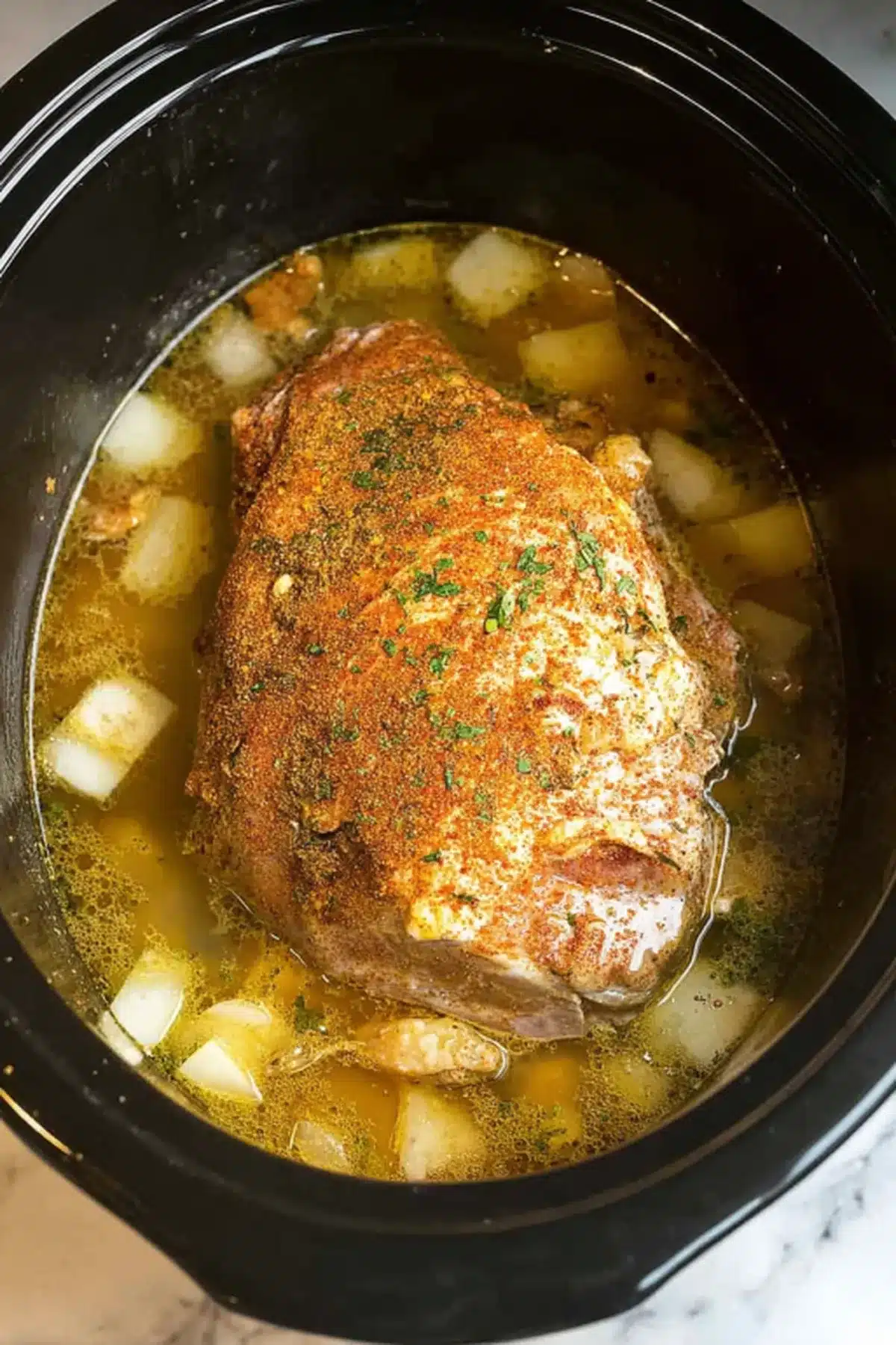 - Garnish with fresh parsley sprigs and maybe a few roasted onion chunks from the crockpot for rustic charm.