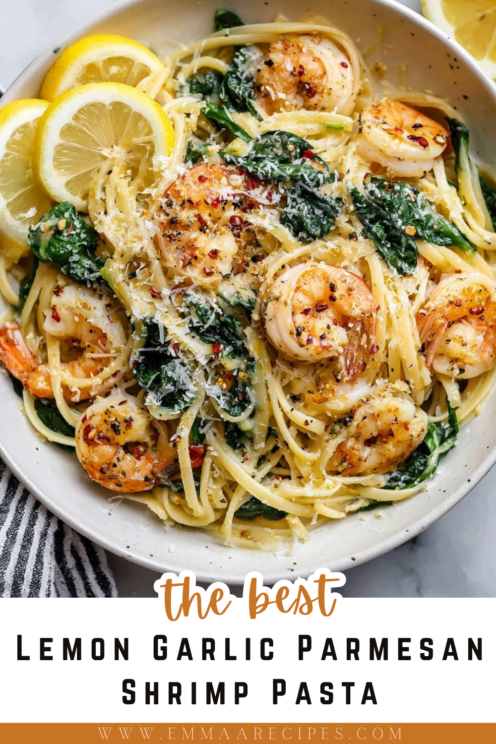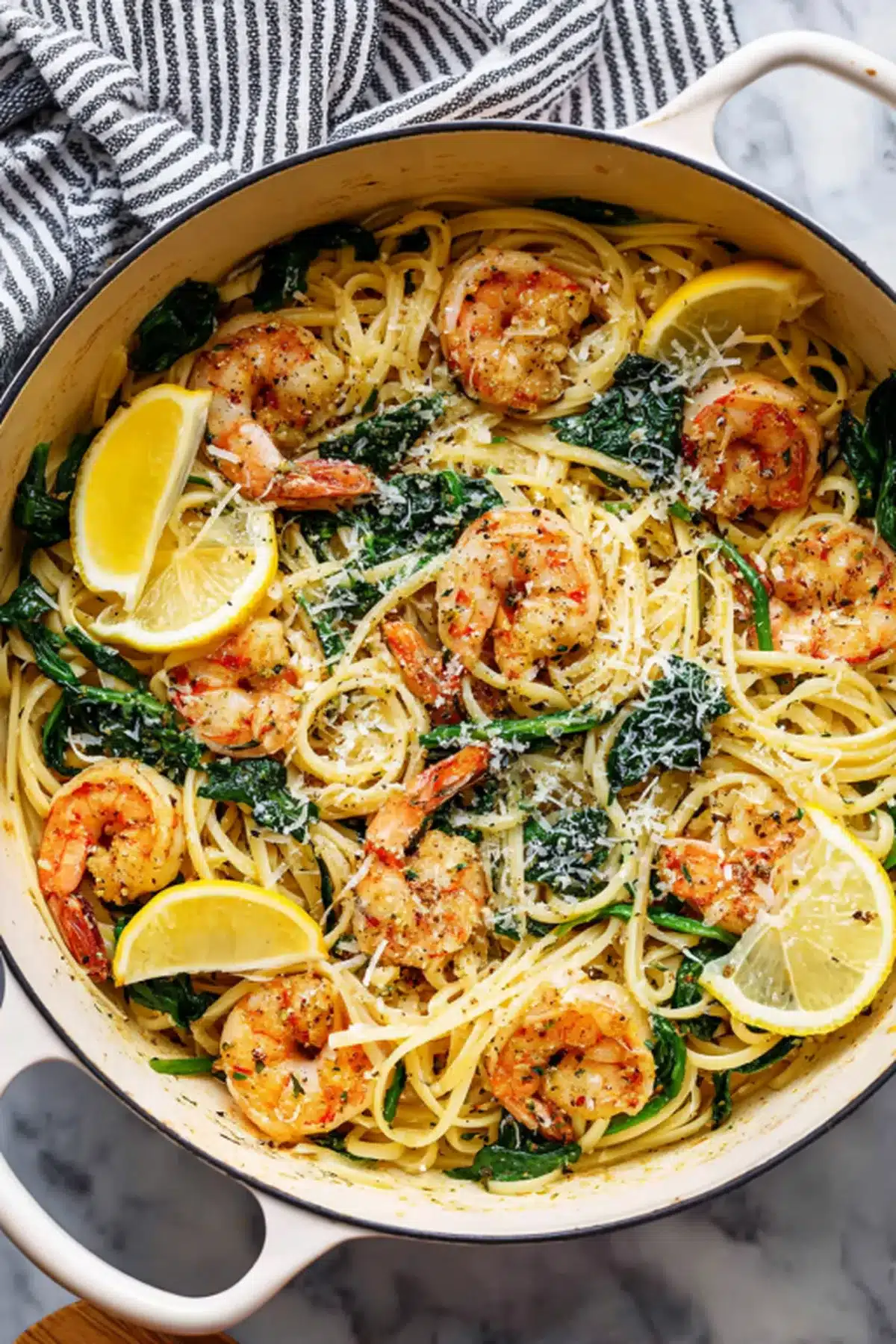Silky linguine tossed with garlicky shrimp, wilted spinach, buttery parmesan, and a bright splash of lemon. A weeknight stunner that feels like a dinner party dish.