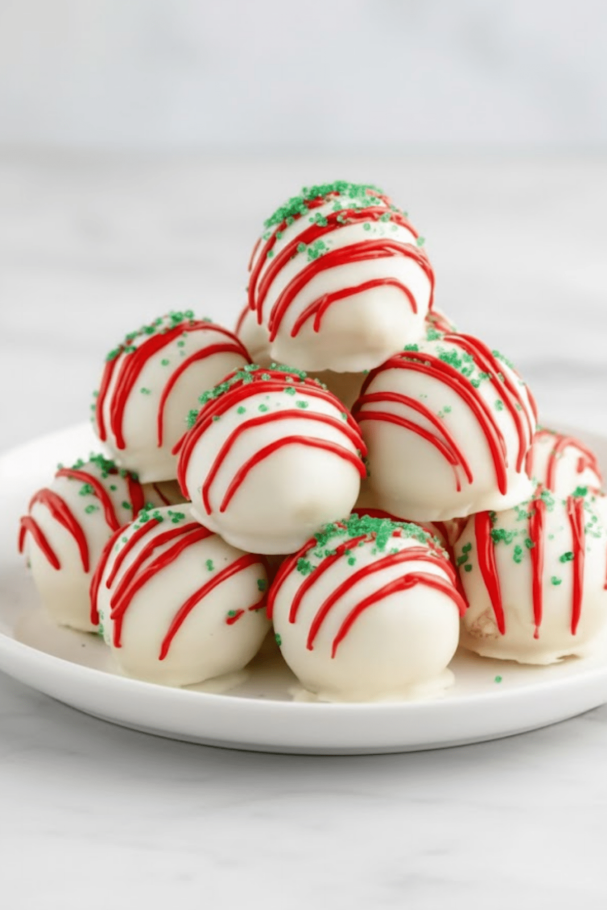 These festive bites combine everything I adore about holiday baking easy, no-bake indulgence, a wintry white shell that shatters softly under your teeth, and a sweet, creamy center that melts like a memory on your tongue. Think of them as truffles dressed in their holiday best soft, snowy, and sprinkled with cheer.