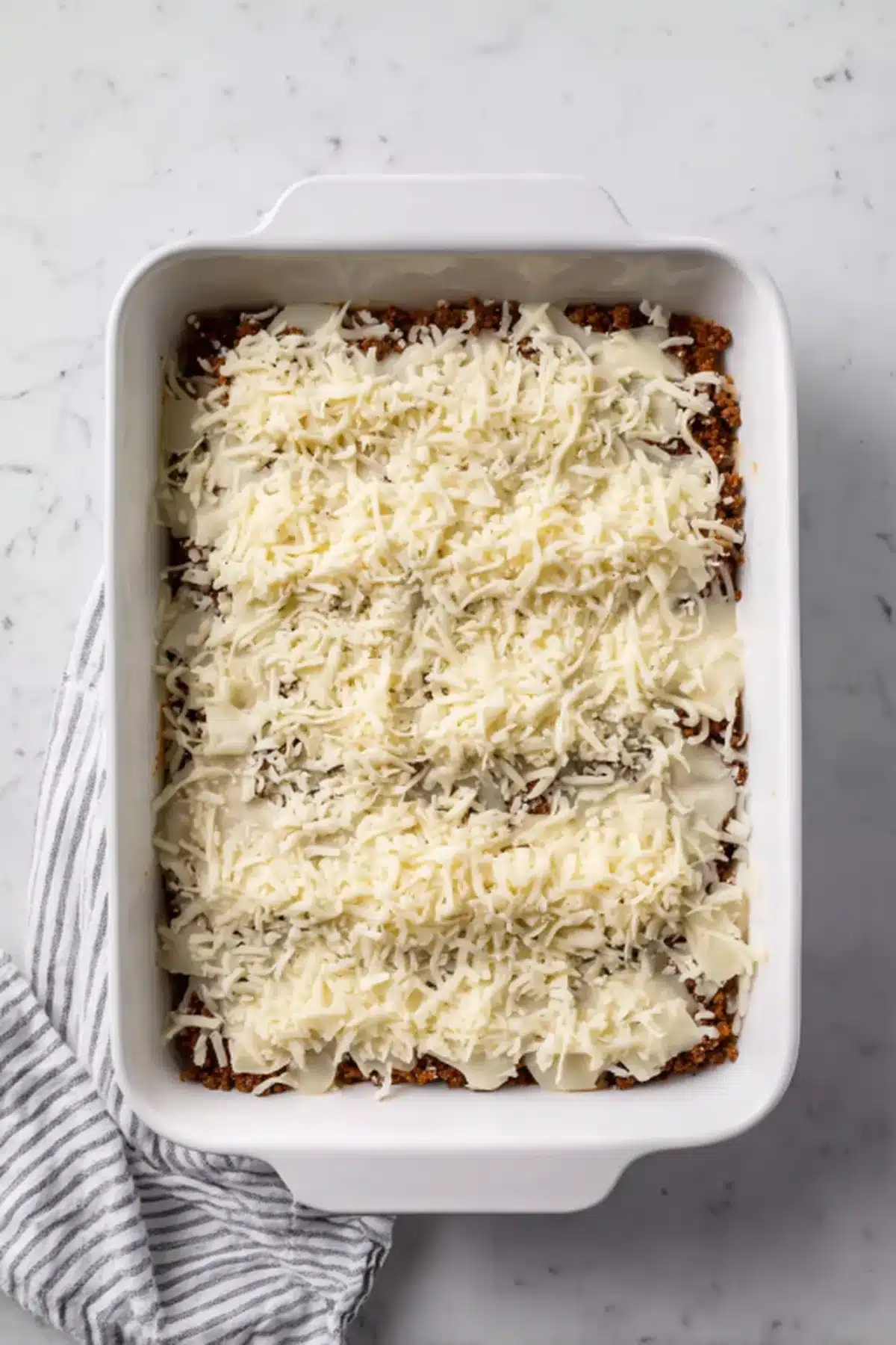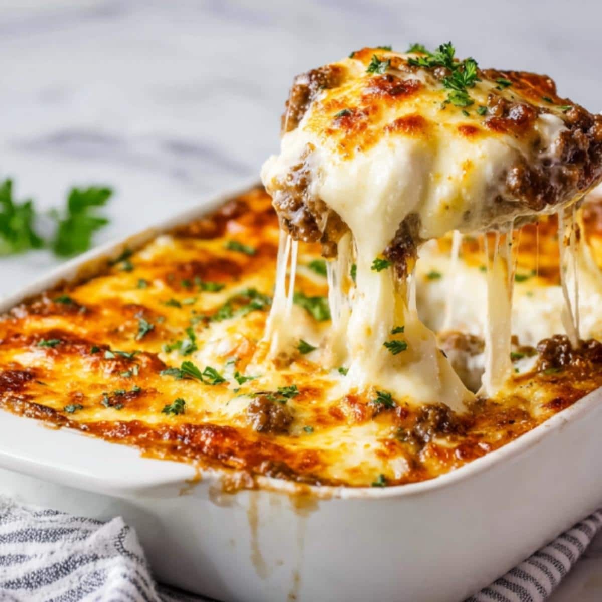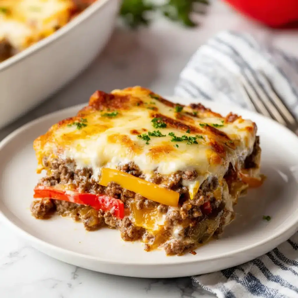 Imagine savory ground beef infused with Worcestershire sauce, softened peppers and onions adding sweetness, and a creamy, cheesy base tying everything together. The provolone melts into silky layers while mozzarella creates that irresistible golden, bubbly top.