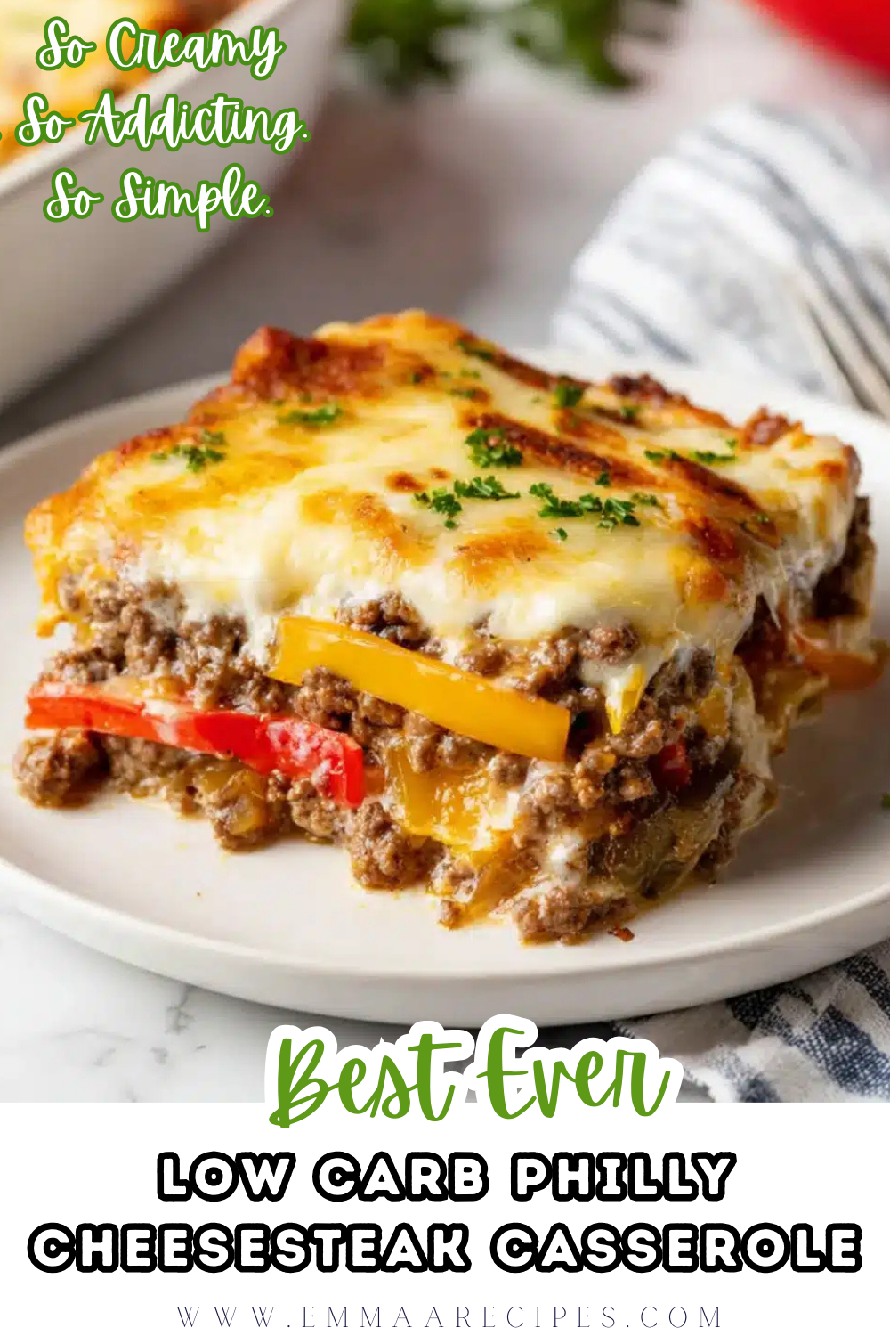 Low Carb Philly Cheesesteak Casserole is everything I love about the classic sandwich savory beef, sweet peppers, caramelized onions, and melty cheese without the bread weighing it down. It's rich, creamy, cheesy, and deeply satisfying while staying low carb and keto-friendly.
