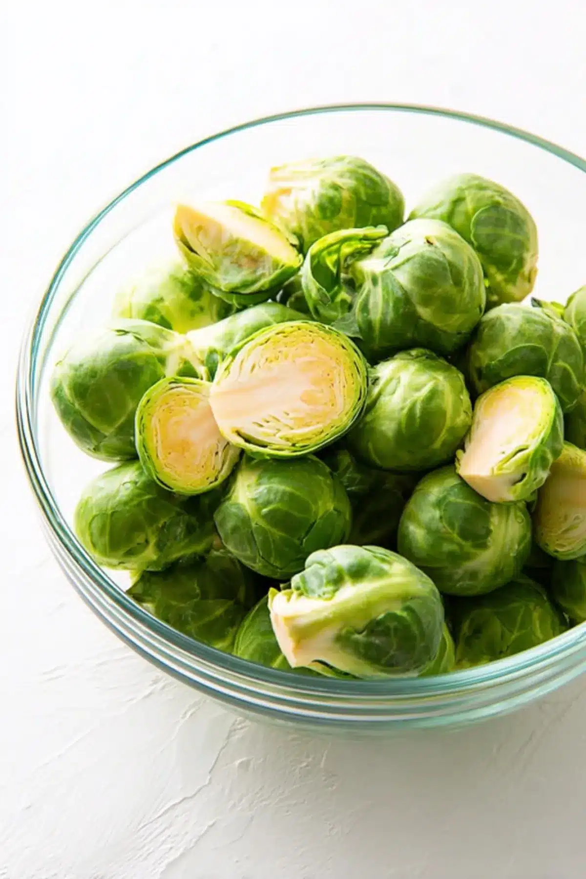 - Wash, trim stems, and halve Brussels sprouts