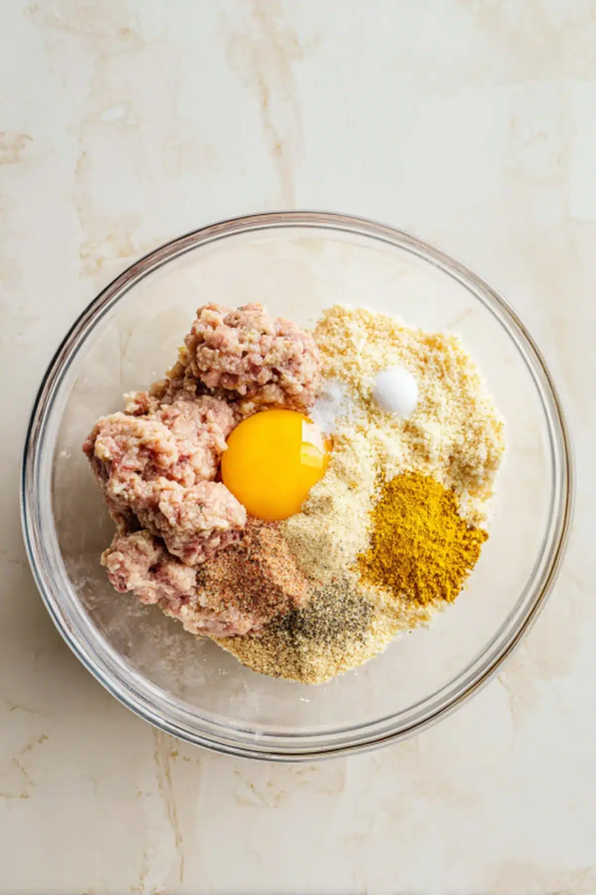 - In a large bowl gently combine ground chicken, bread crumbs, egg, parmesan, 2 cloves garlic, parsley, ยฝ teaspoon Italian seasoning, onion powder, salt, and pepper