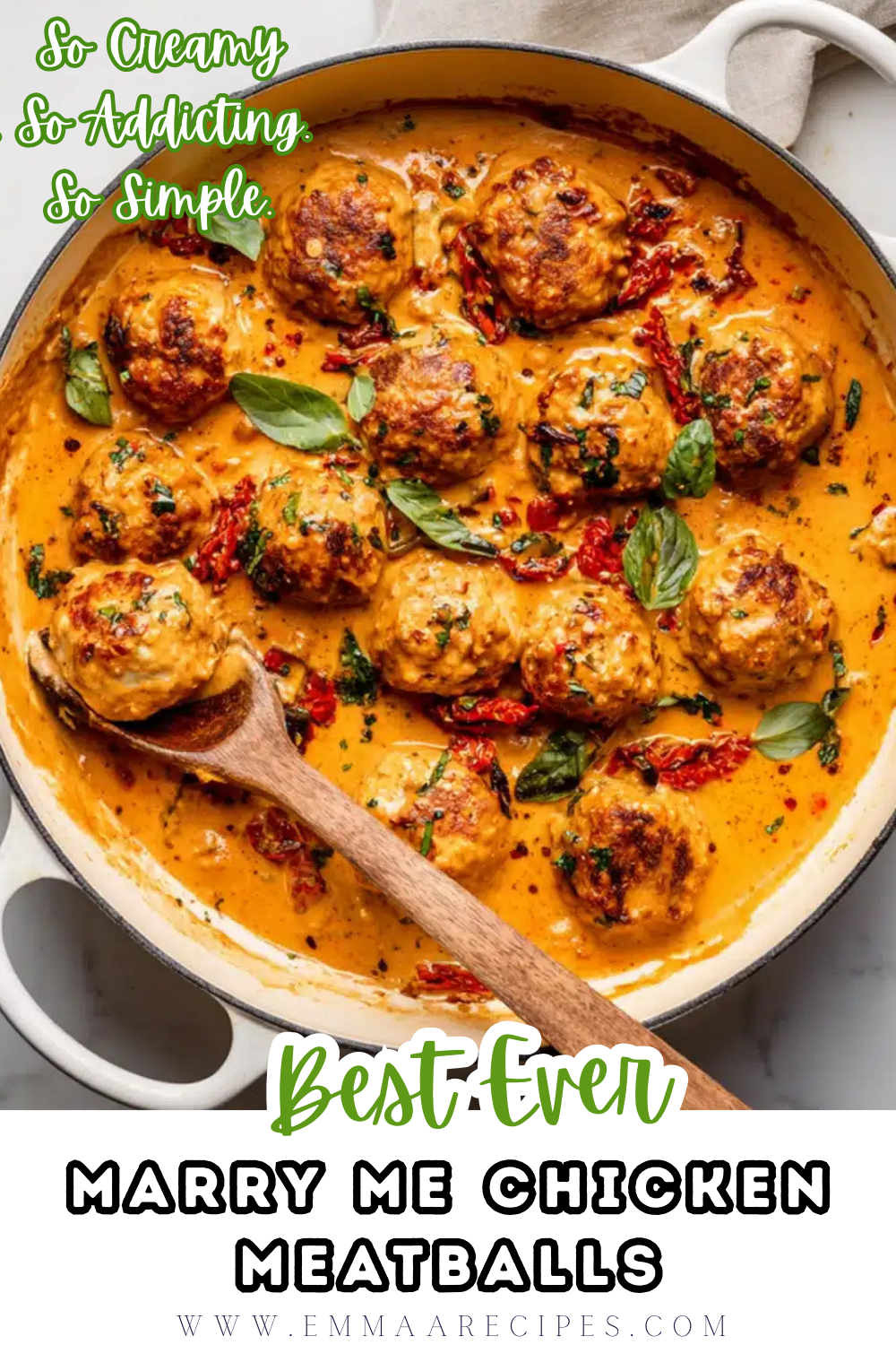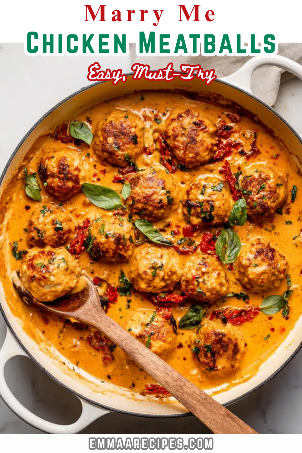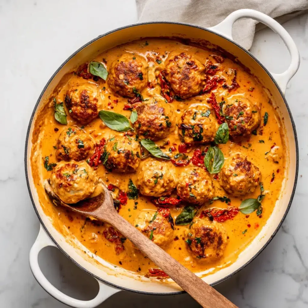 Marry Me Chicken Meatballs are the kind of dish that feels like a love letter written in cream, garlic, and sun-dried tomatoes. Tender chicken meatballs simmer in a velvety parmesan cream sauce kissed with Italian herbs and bright basilย cozy enough for a weeknight, elegant enough for guests.