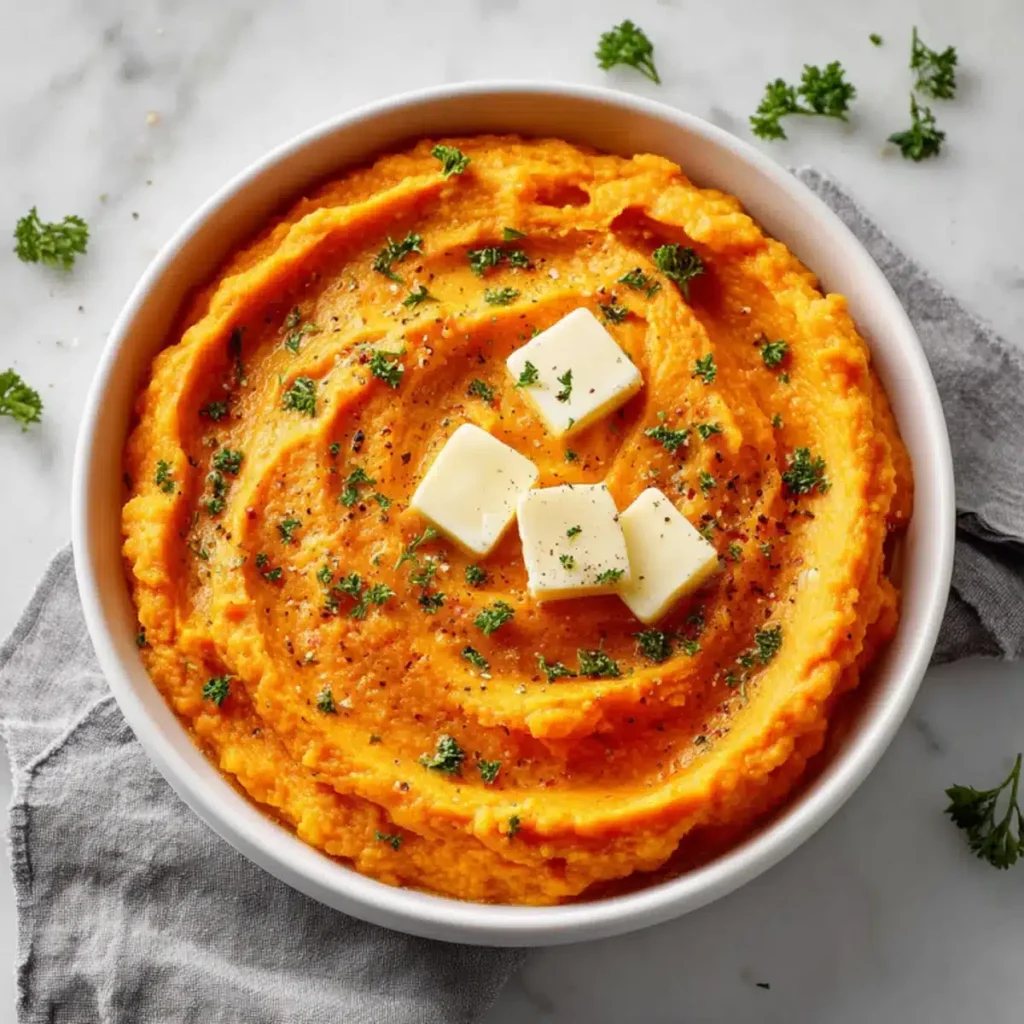 Creamy, buttery mashed sweet potatoes made with simple ingredients and perfect as a comforting side dish.