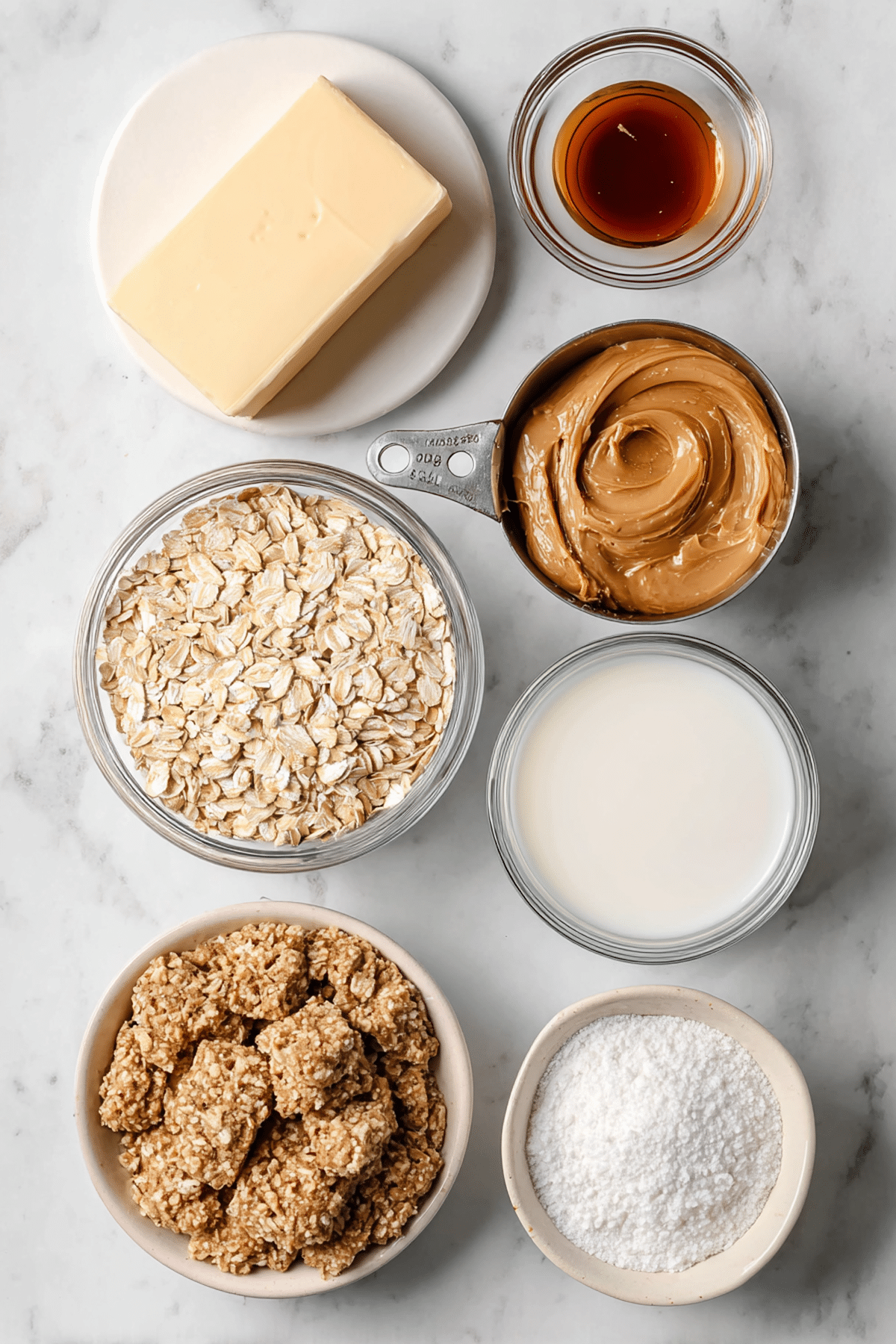 - Oats: Quick oats bind the mixture better than rolled oats for this no-bake style.