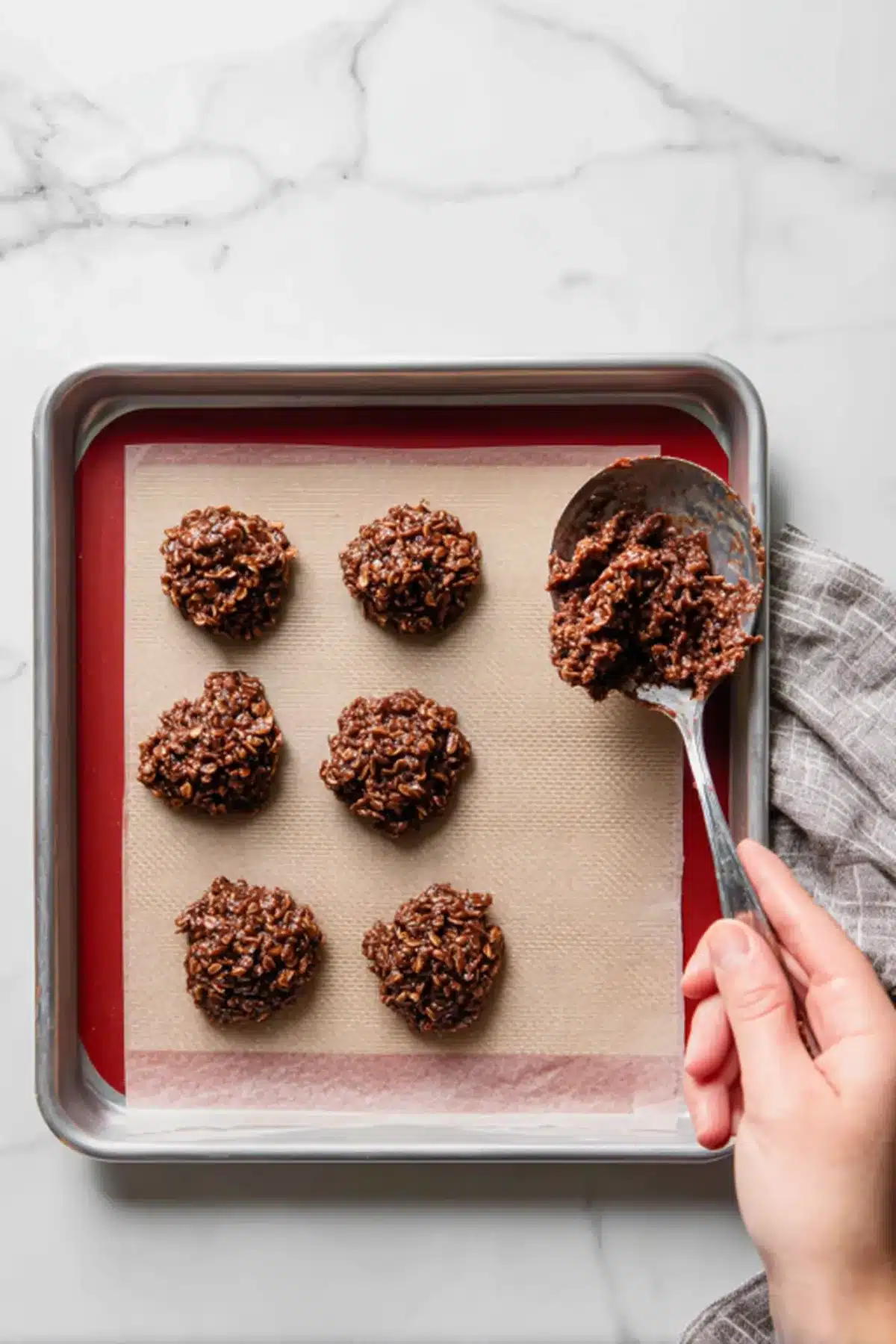 - Scoop and set: Drop spoonfuls onto the parchment. Let them rest for 15-30 minutes to firm up.