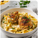 One-Pan Chicken with Buttered Noodles is proof that simple ingredients, treated with care, can become something deeply satisfying. The golden chicken, the buttery noodles, the whisper of garlic it all comes together in one humble pan.