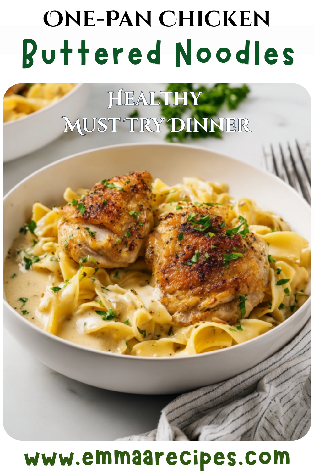 One-Pan Chicken with Buttered Noodles is the kind of meal I turn to when I want comfort without complication. Right after a long day, when the kitchen light feels warm and inviting, this dish answers every craving. Tender, golden-seared chicken thighs nestled into silky, buttery egg noodles it's simple, yes, but it tastes like something much more indulgent.