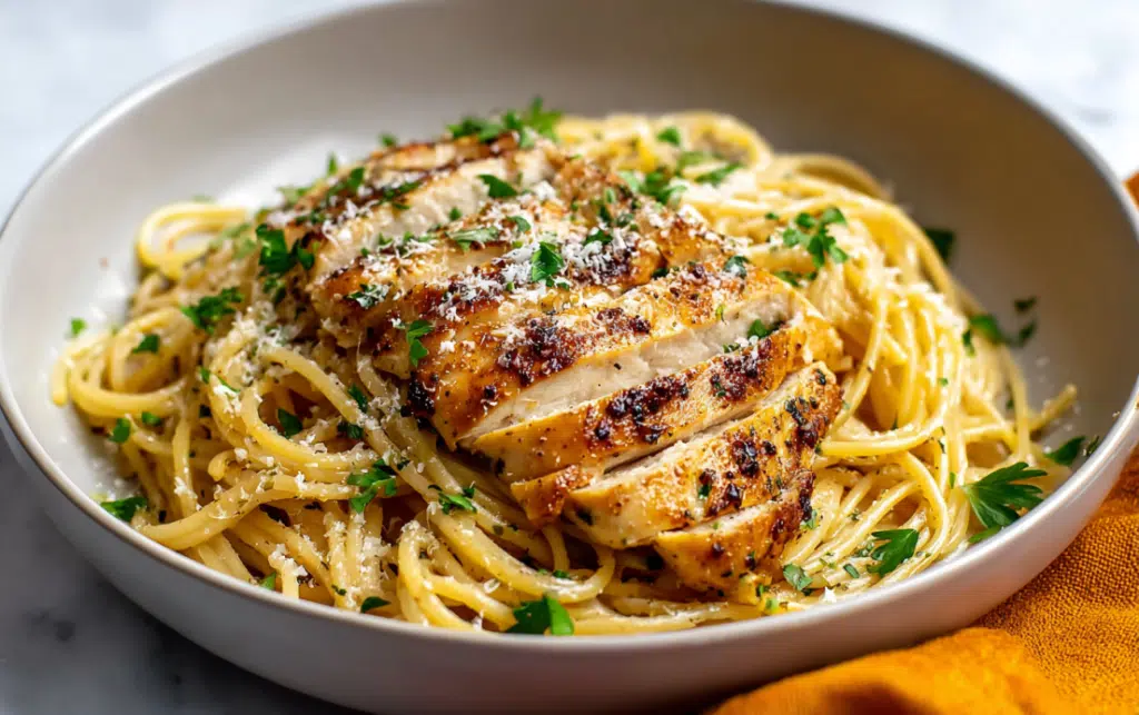 The moment you fork into this dish the buttery noodles, the savory chicken, the warmth of garlic it feels like coming home.