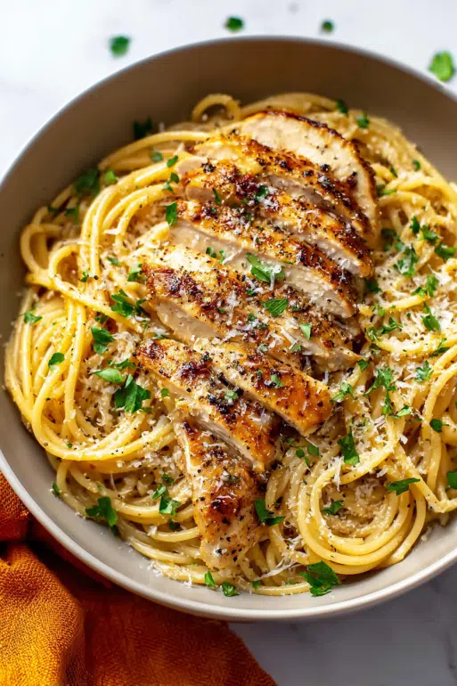 Imagine silky noodles glistening in garlicky butter, crowned with juicy strips of pan-seared chicken. Every forkful delivers the perfect balance of richness from the butter, umami from the Parmesan, and brightness from a hint of parsley. It's indulgent without being heavy like an Italian trattoria meal you made in your own kitchen.