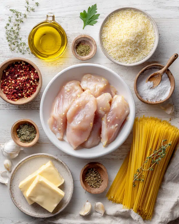• Budget-friendly: Uses pantry staples olive oil, garlic, butter, pasta, and chicken.