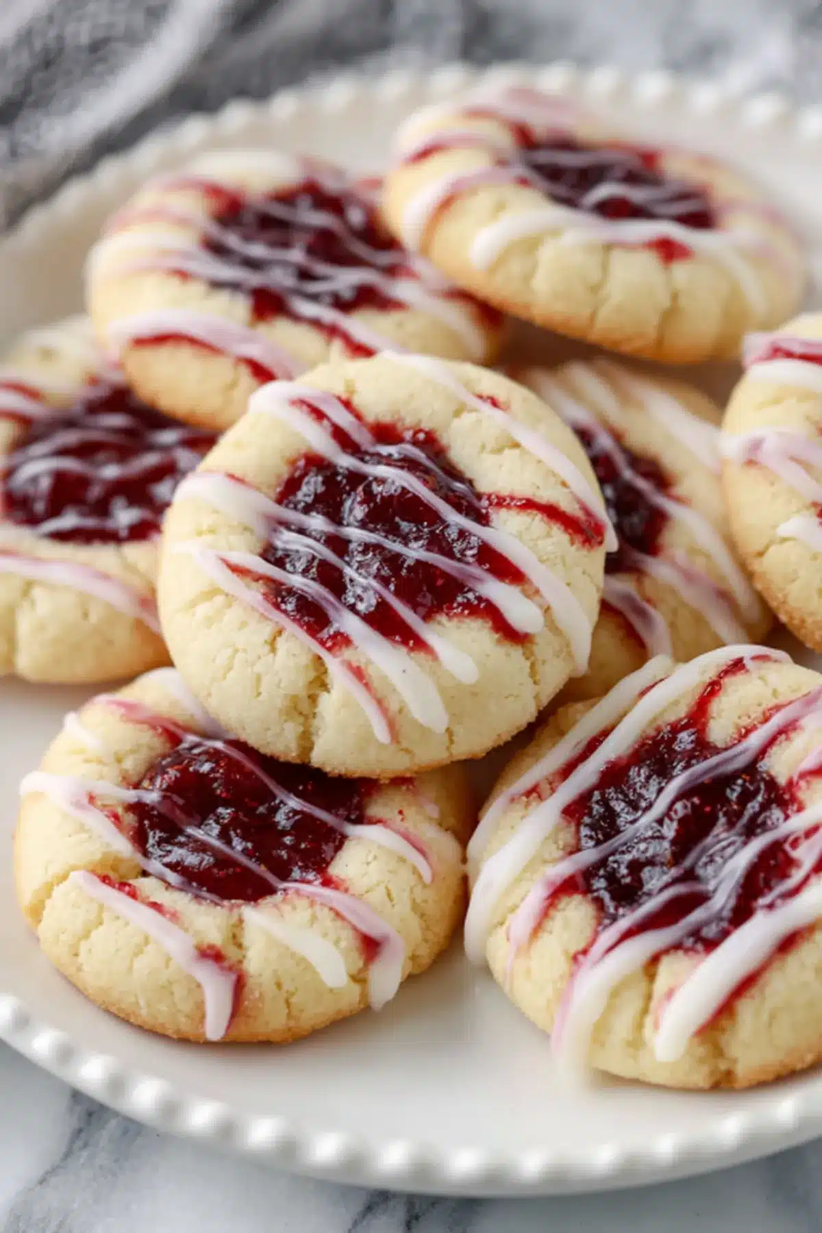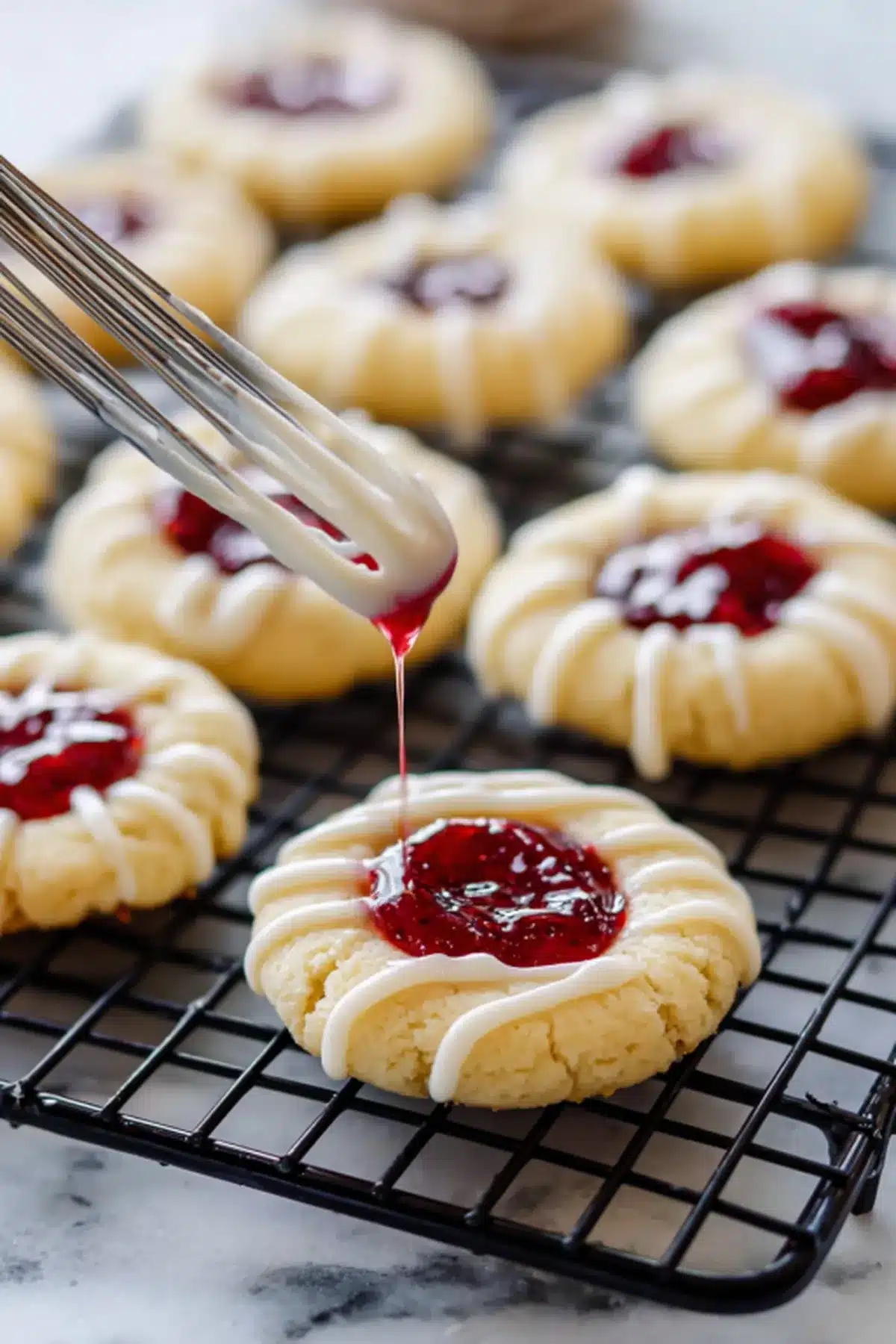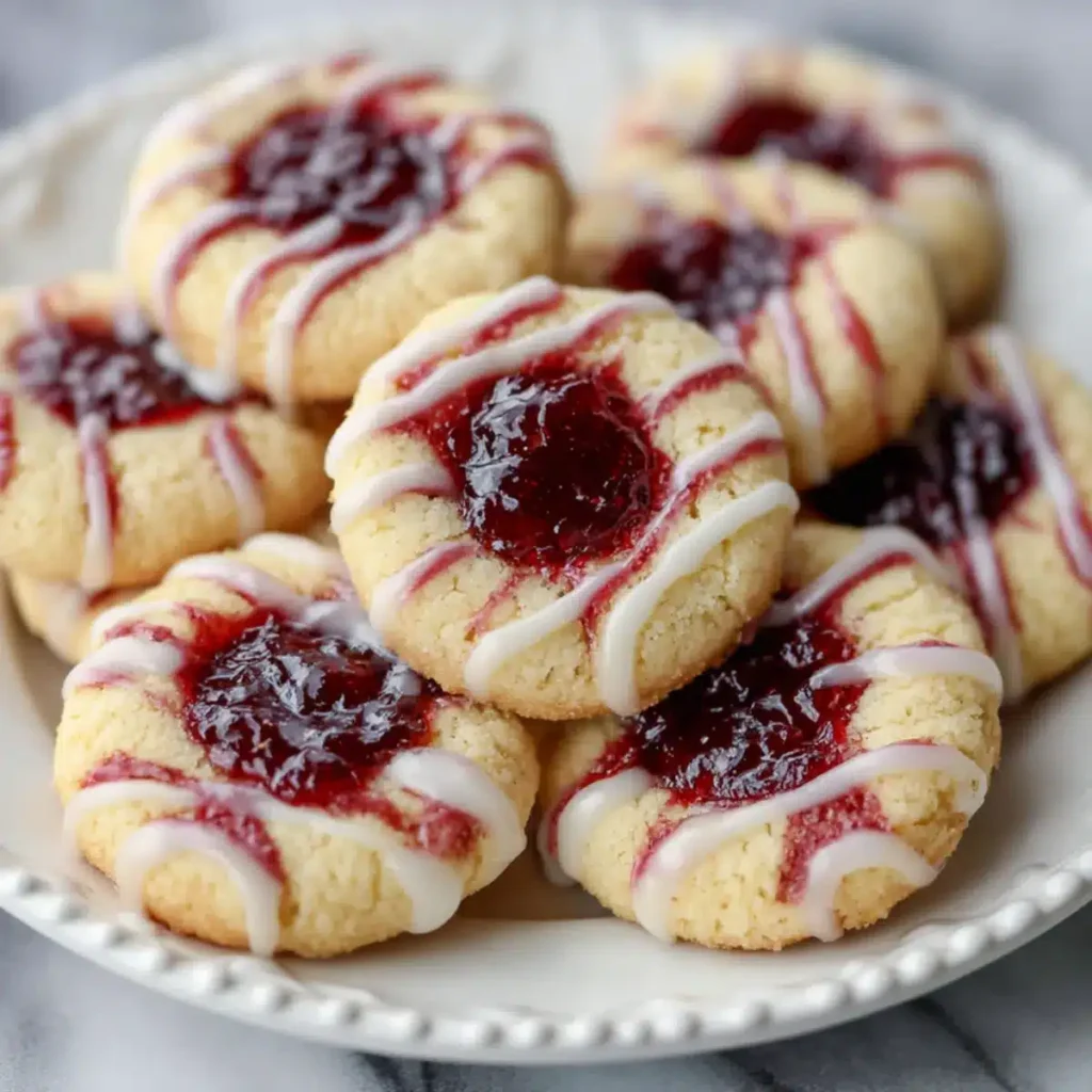 Tender, buttery cookies filled with sweet raspberry jam and finished with a vanilla icing drizzle these thumbprint cookies are the ultimate cozy-day treat, perfect for holidays, gifting, or a nostalgic afternoon bake.