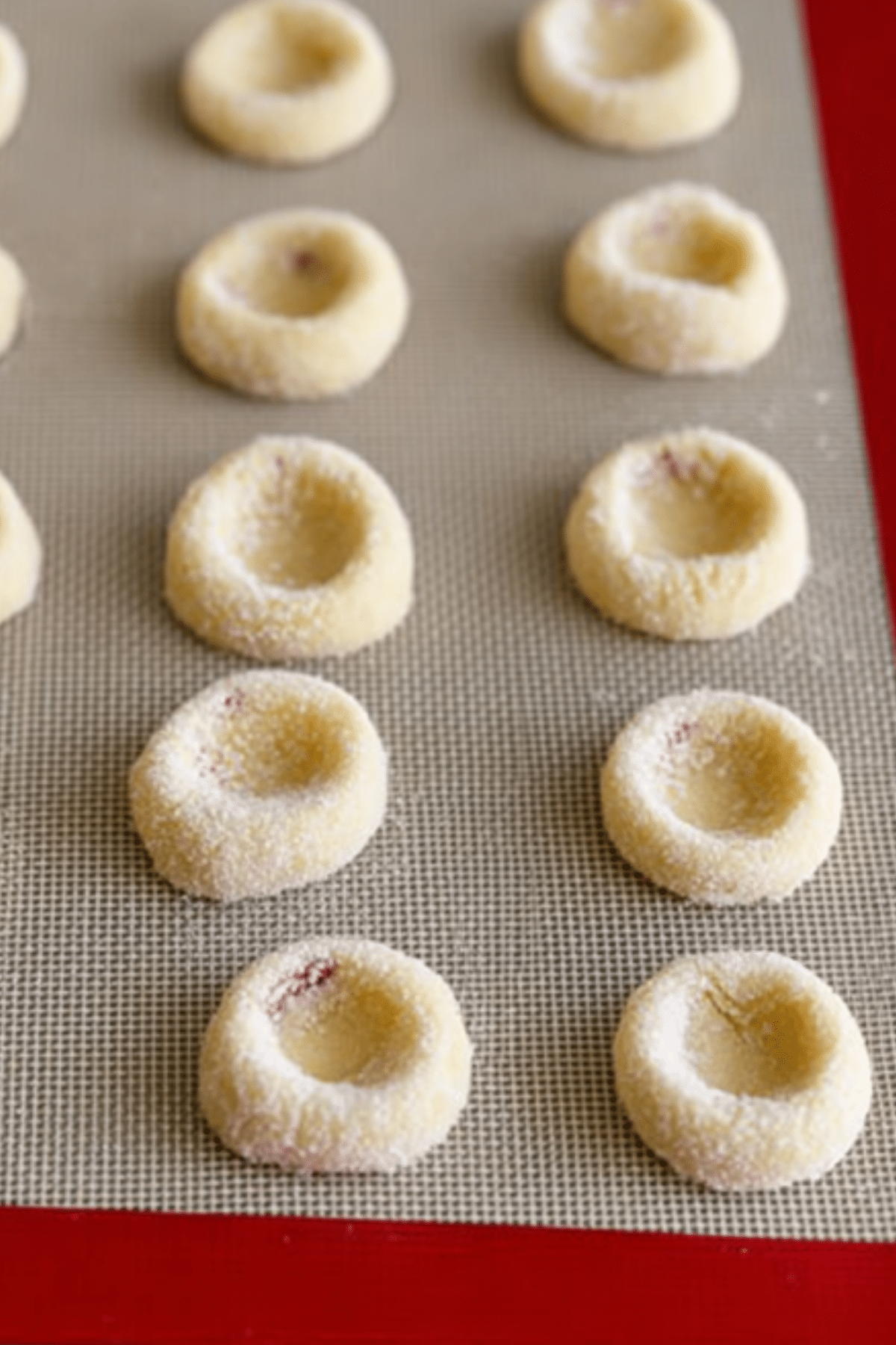 7. Use your thumb or back of a teaspoon to press an indentation into each ball.