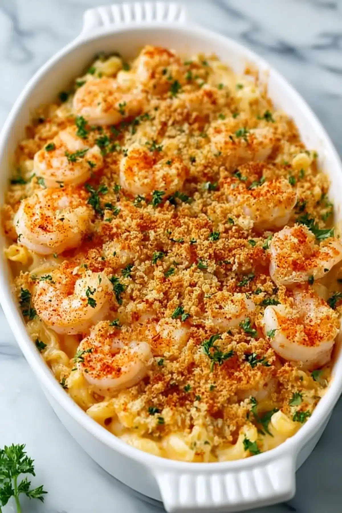 A creamy, cheesy, and comforting shrimp casserole that wraps tender rice, juicy shrimp, and a buttery breadcrumb topping into a baked dish of cozy flavor. Perfect for weeknights or sharing at potlucks.