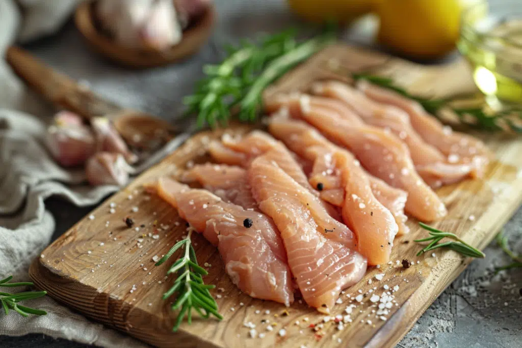- Prep the chicken: Cut chicken breasts into tenders. Season with oregano, salt, and pepper.